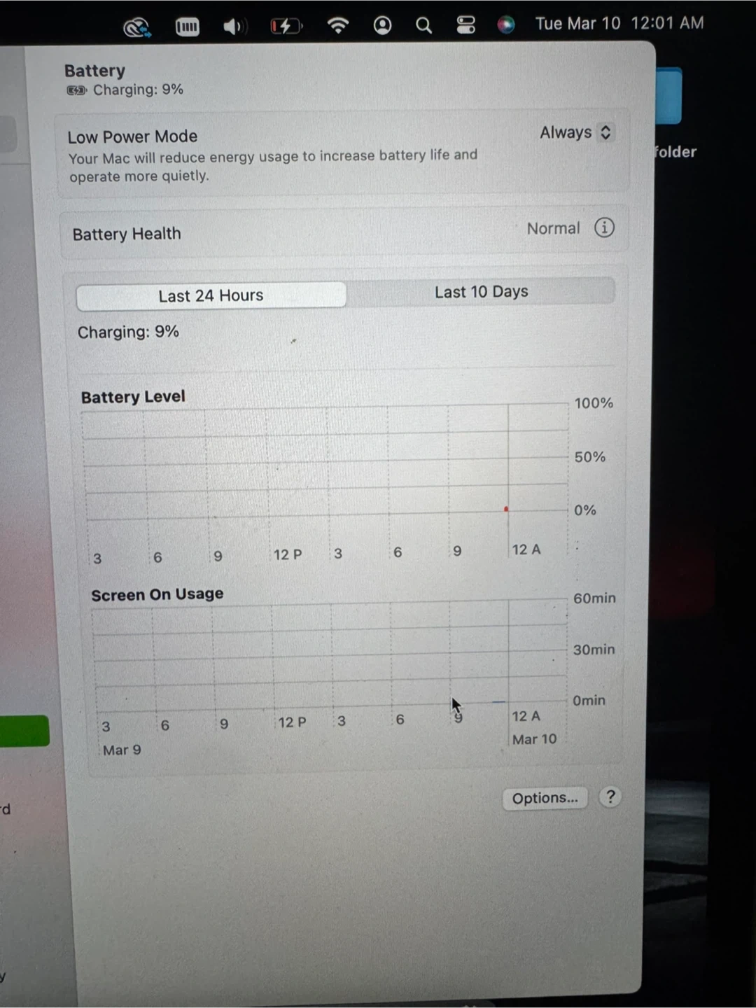 • Battery health shows Normal
