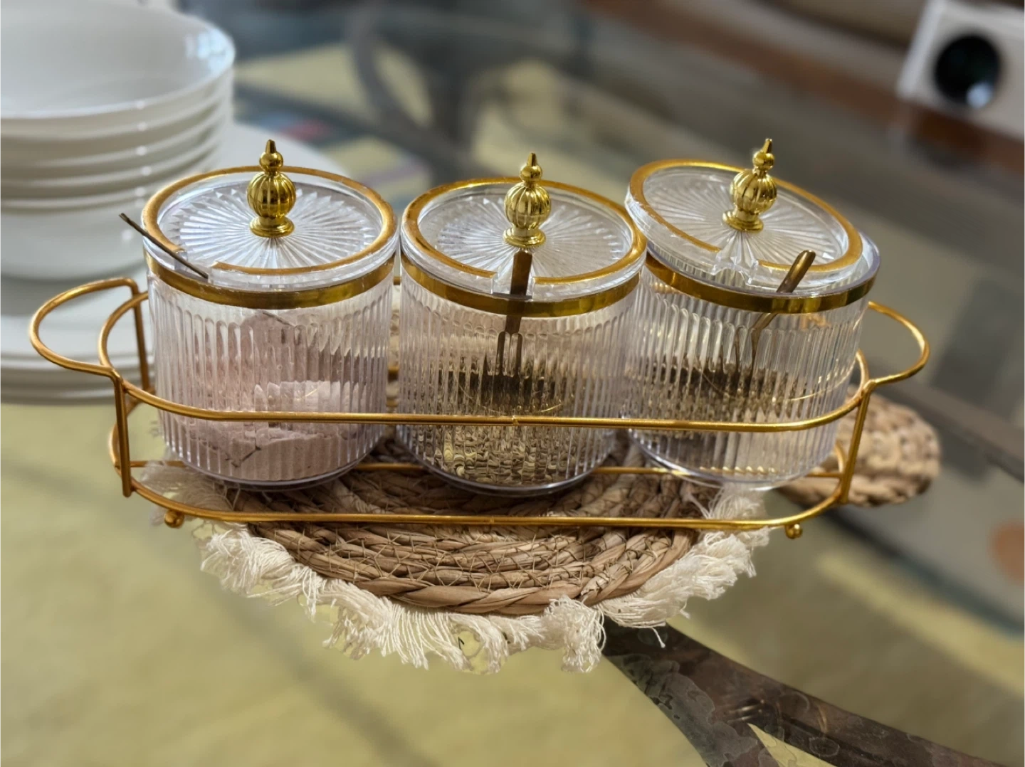 • Dining Condiment Jar Set: 3piece with Spoons, $31