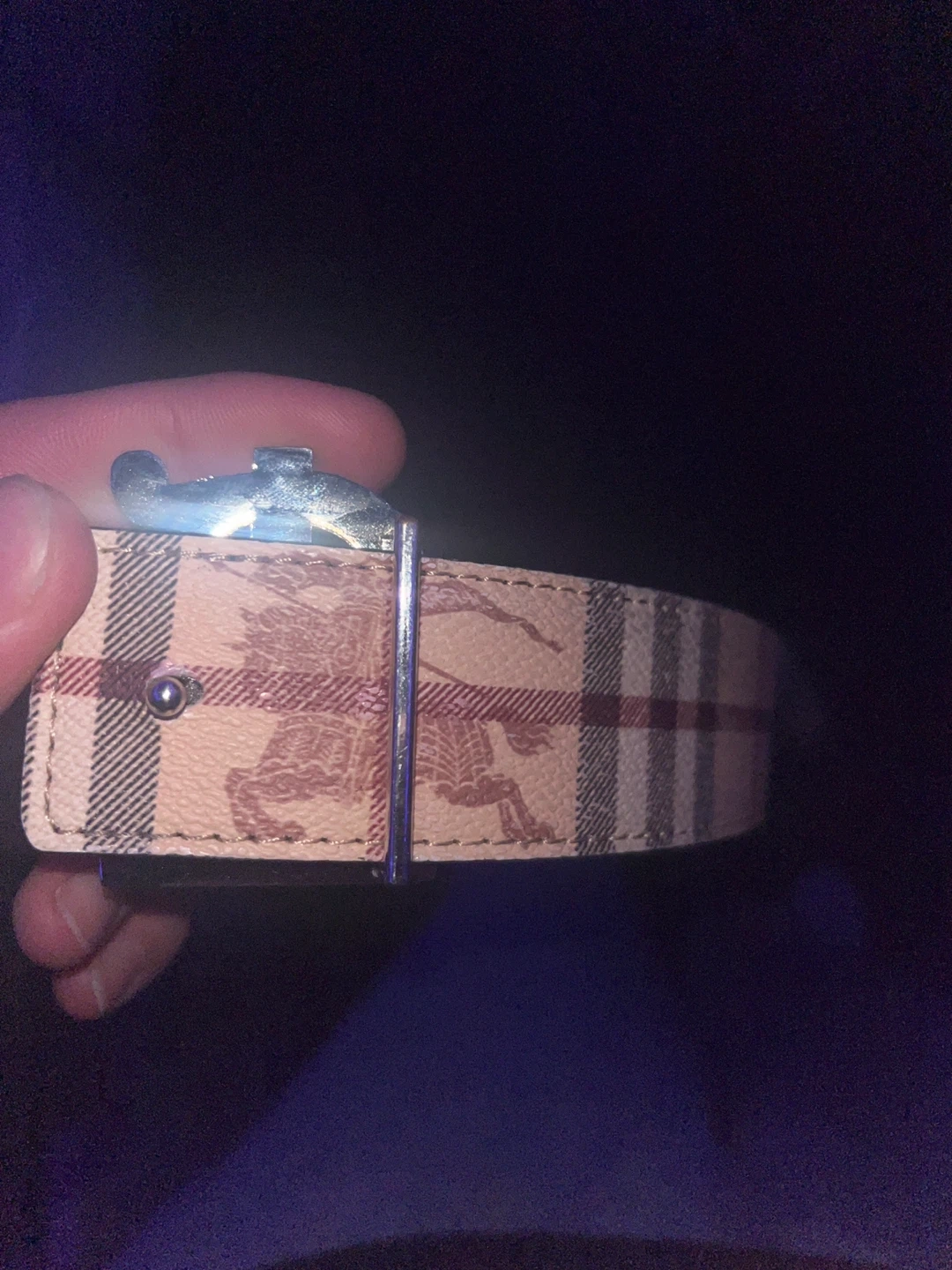 Reversible Burberry belt featuring the iconic check pattern on one side and a black monogram buckle on the other. Leather material. Stylish. Open to offers.