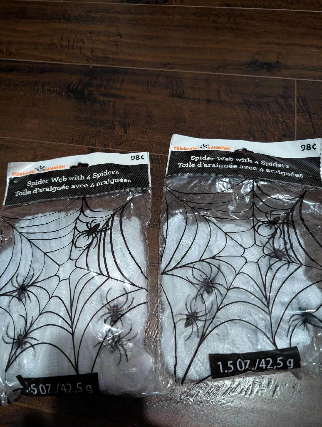 437I'm selling Celebrate! spider web with 4 spiders. It weighs 1.5 oz/42.5 g. Perfect for your Halloween decorations! 2 packs. New.
