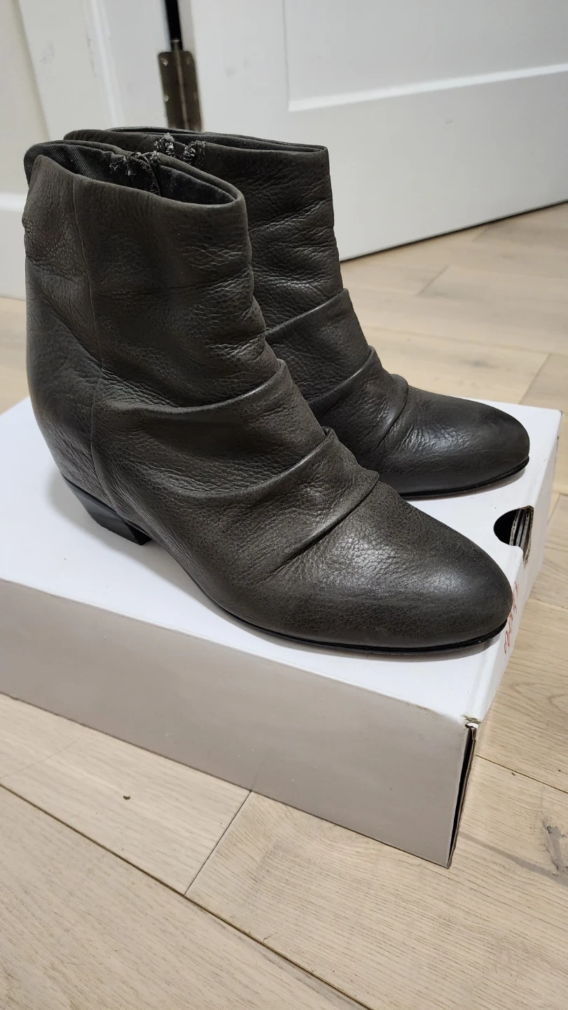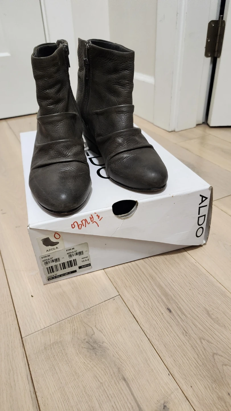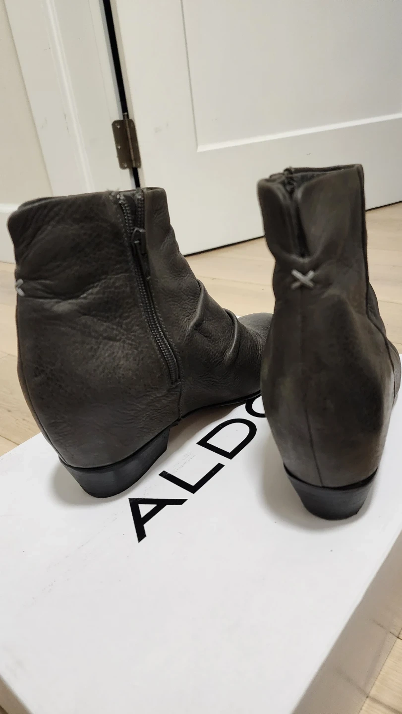 Grey leather ankle boots from ALDO. Zipper closure on the side. Includes original box. Perfect for everyday wear! Once worn.
