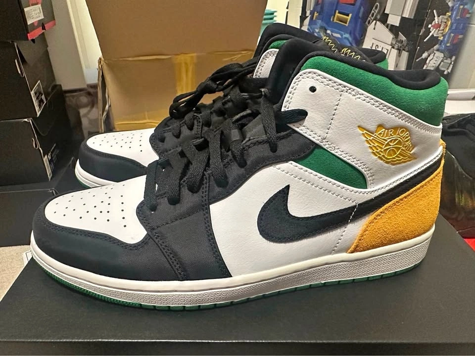Air Jordan 1 Mid SE White Black Green Orange Size 10.5 US
