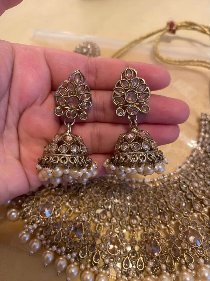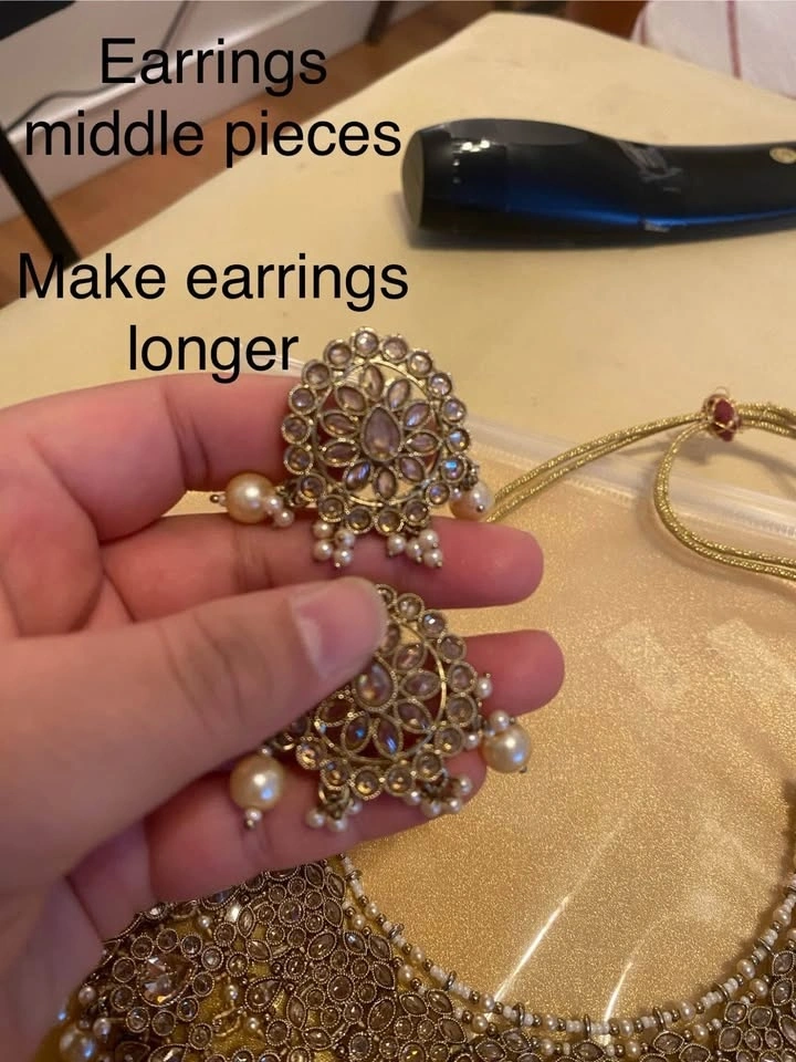 Earings - earings have two extra pieces that can go in the middle of stud n jhumka. Makes it longer.