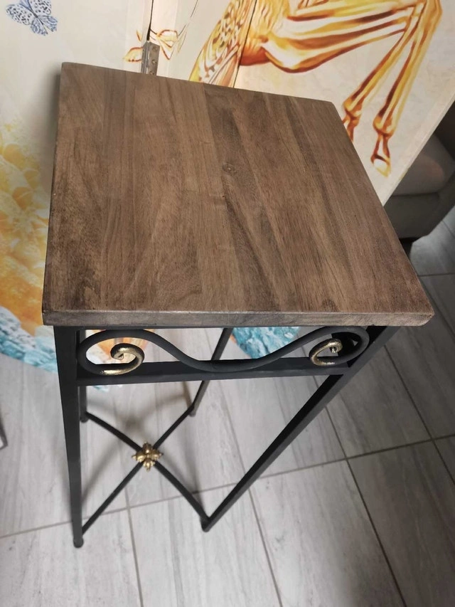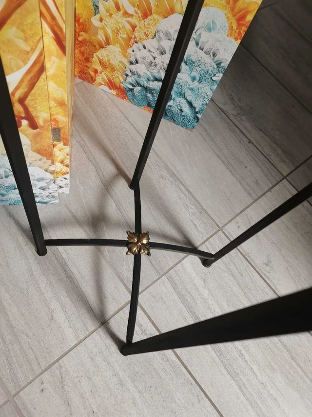 Rare find metal base stand for flower pot and display gold paint touch on the side and bottom top plank 12.5x12.5" height 36"