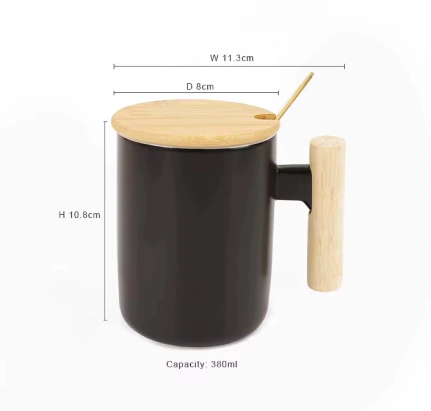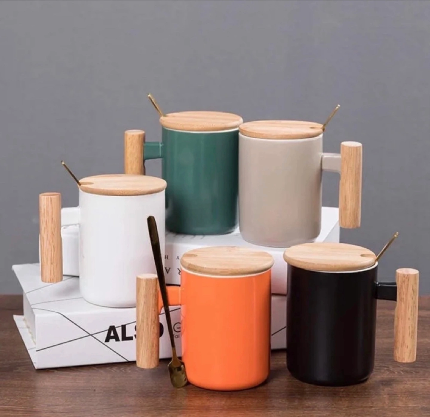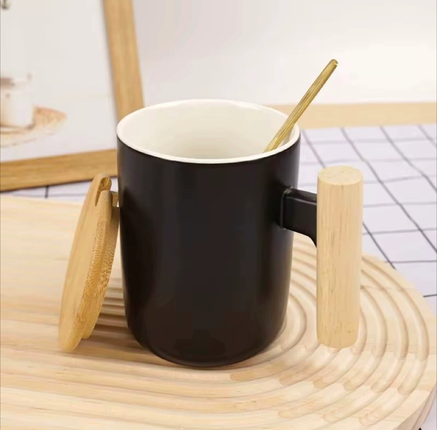 Ceramic Mugs with Wooden Handles Lids and gift box