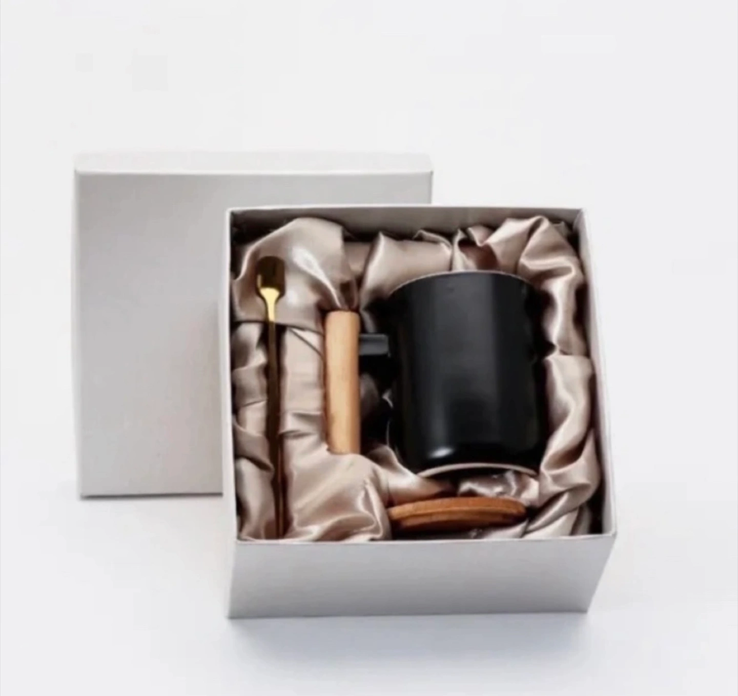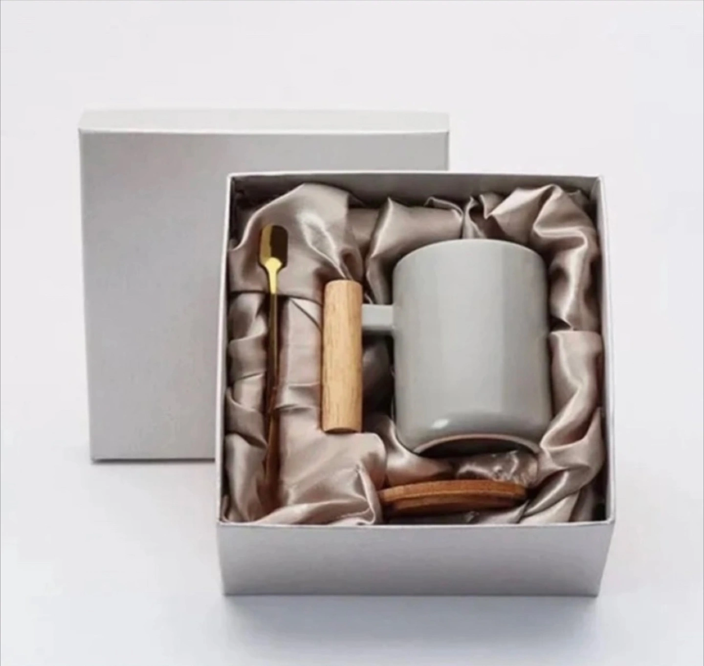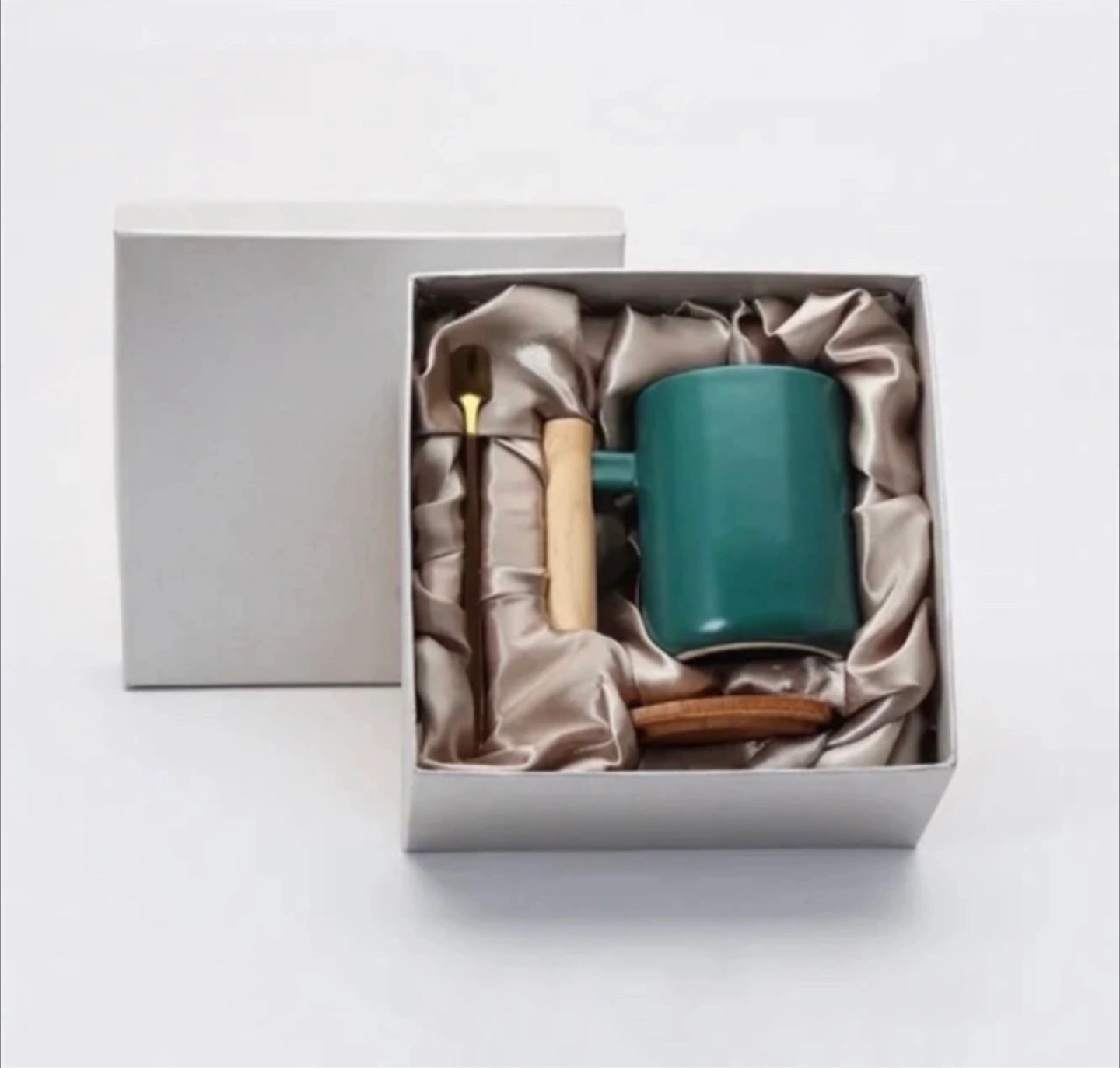 Ceramic Mugs with Wooden Handles Lids and gift box