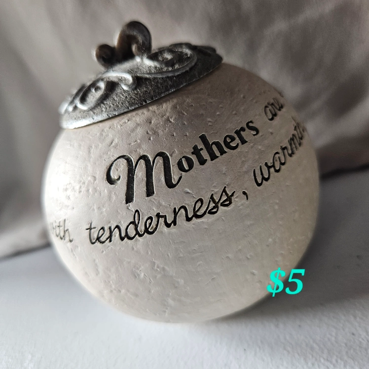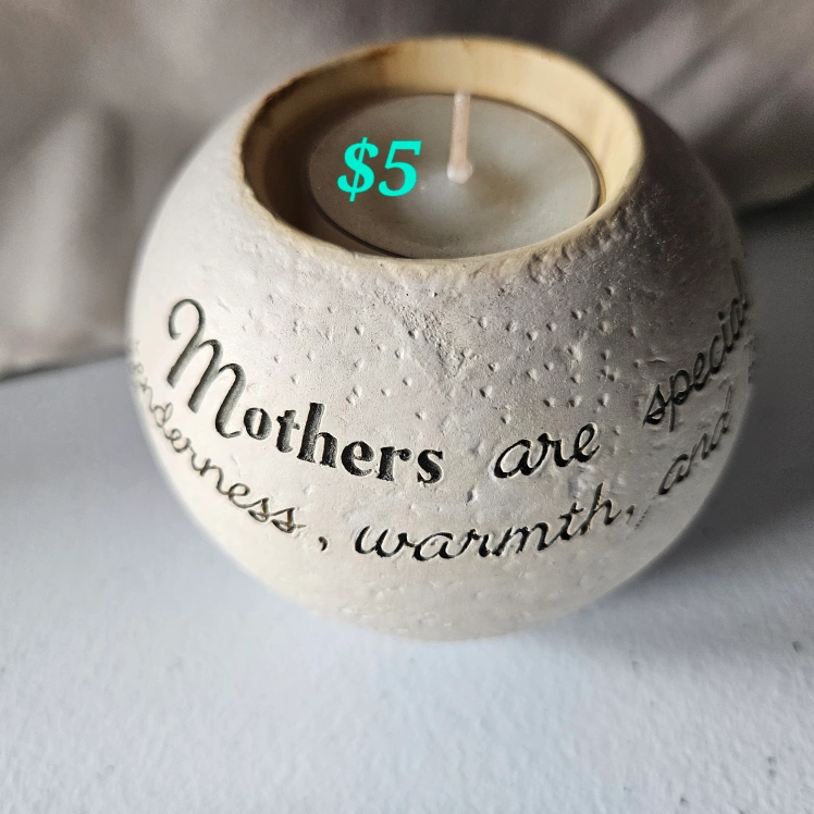 25A ceramic tea light holder with a decorative lid. The holder is round and features the words "Mothers are special and so kind....touching lives with tenderness, warmth and love combined."