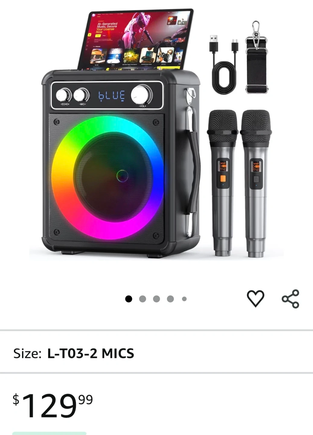 1 / 81 / 8Buy & SellPortable Karaoke Machine with 2 MicrophonesPortable Karaoke Machine with 2 Microphones$50Portable karaoke machine with a colourful LED light display. Includes two microphones for duets! Model T-03.ConditionNewWHERE TO MEETCheck LocationView MapSELLERverifiedRochelleGranville812 reviews0 chats·1 favorites·9 viewsSEND CHAT TO SELLERHi Rochelle! I’m interested in your listing.Hi Rochelle! I’m interested in your listing.Get the Karrot app to chatSign In to chat