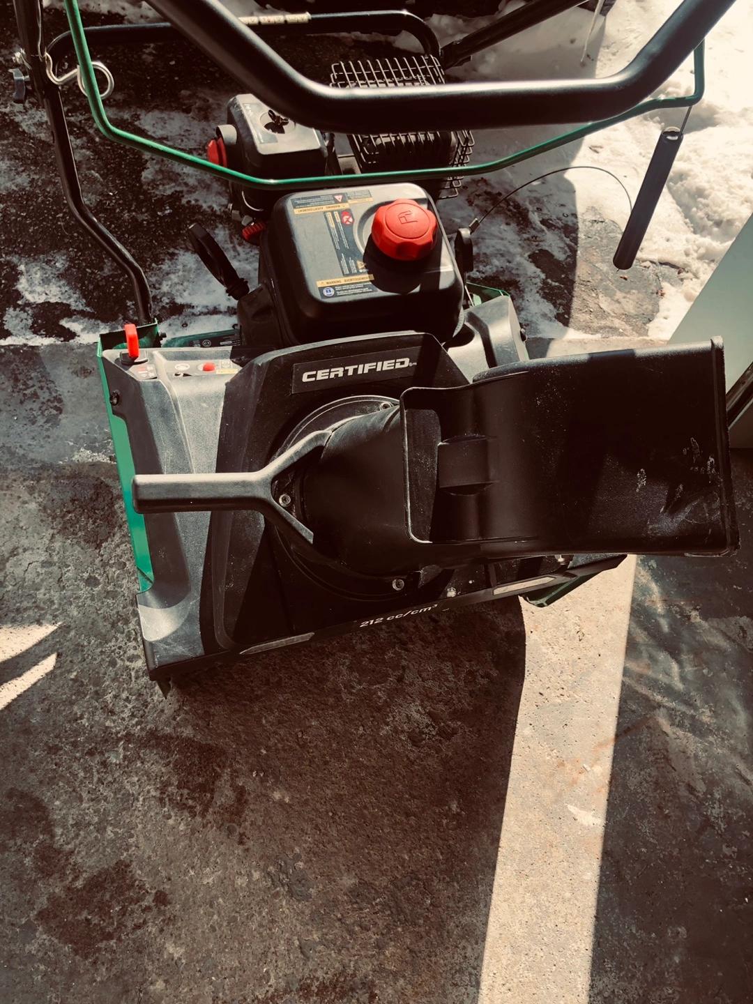 Single stage gas snow blower. Electric and manual start.3 years old.Width 20”. Working well. Easy to use. $350.00