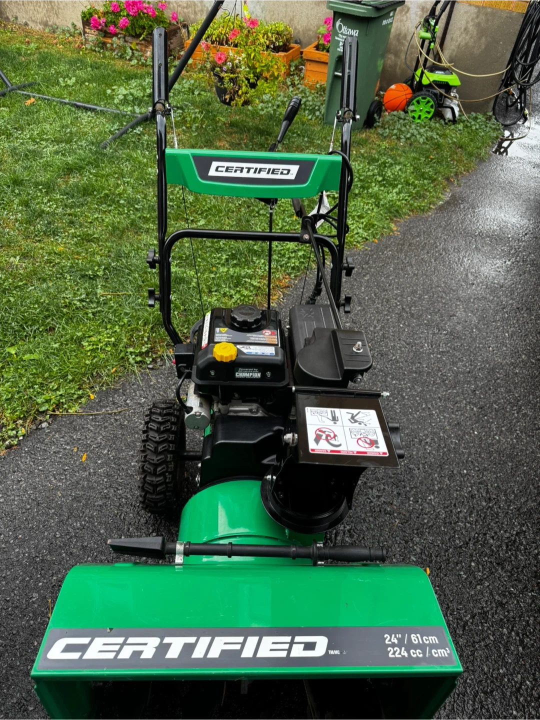 Selling a Certified 24" snow blower! With Electric start. It's in mint working condition and ready to help you tackle those snowy days. This snow blower has a 224 cc engine, making it powerful enough to clear your driveway or walkway with ease new royal purple oil and spark plug. This machine was used twice. Mint condition Delivery Available.
