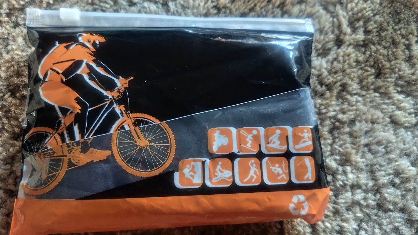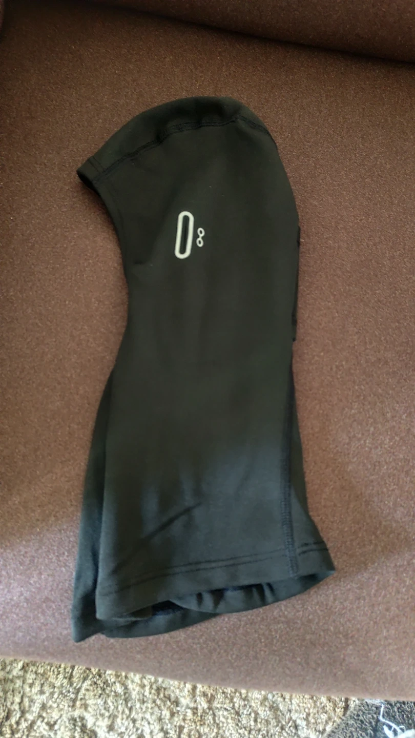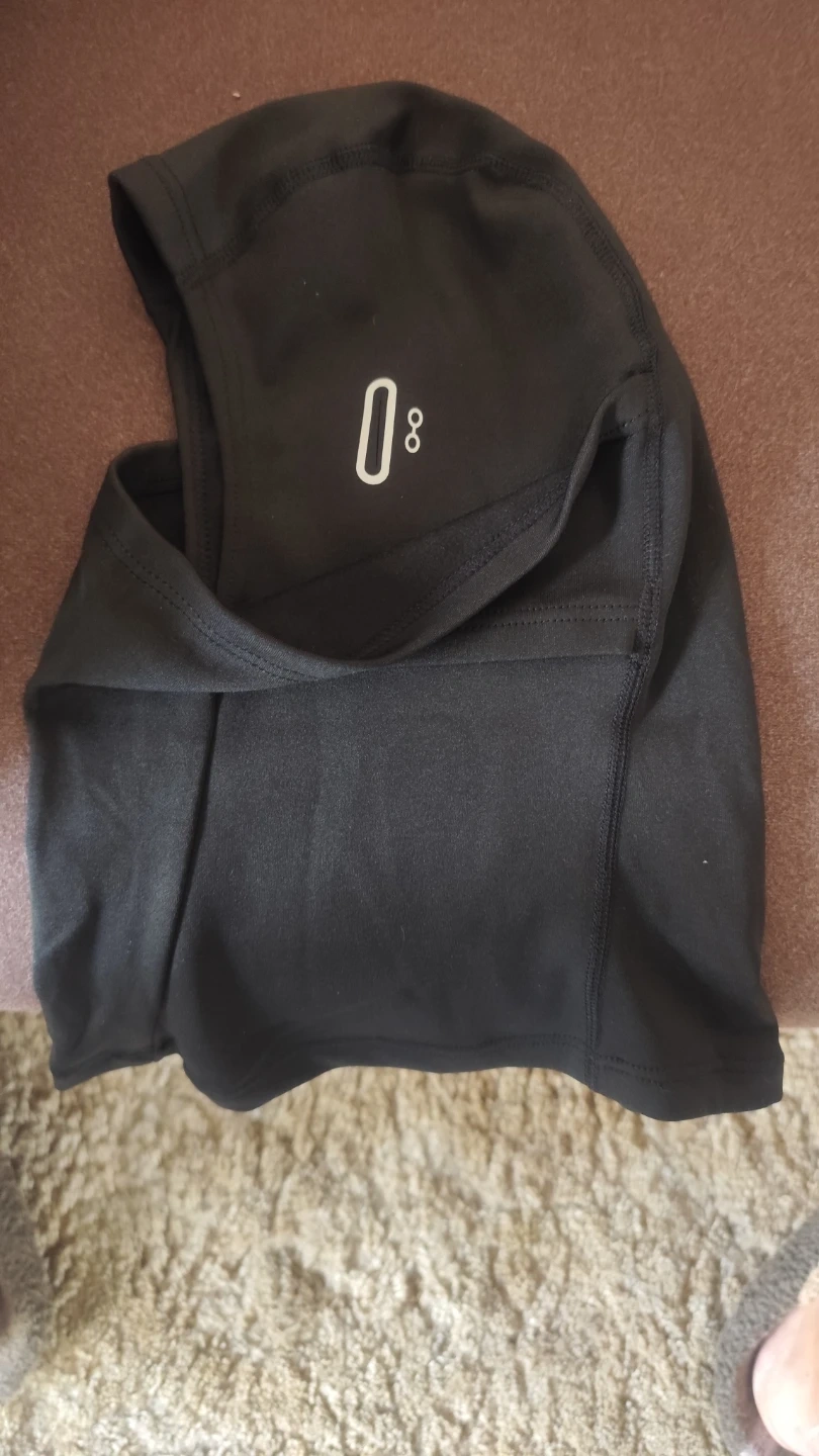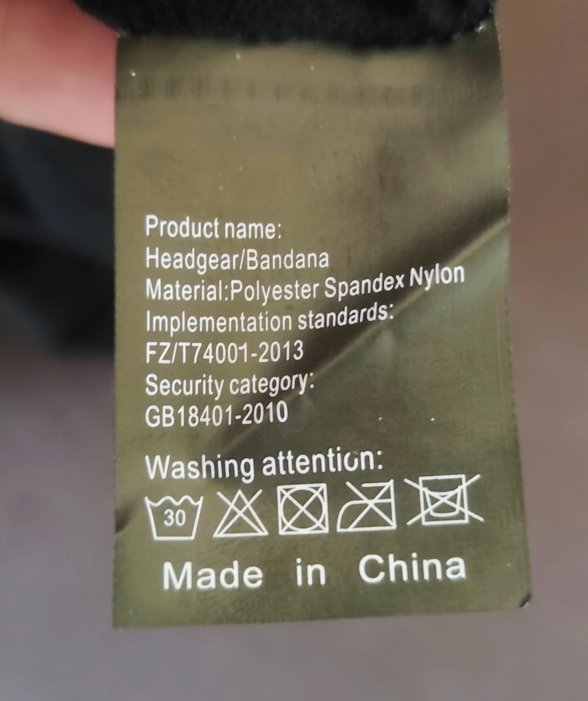 This black headgear is made from a Polyester Spandex Nylon blend. It's designed for various outdoor activities. Great for keeping you covered during sports!