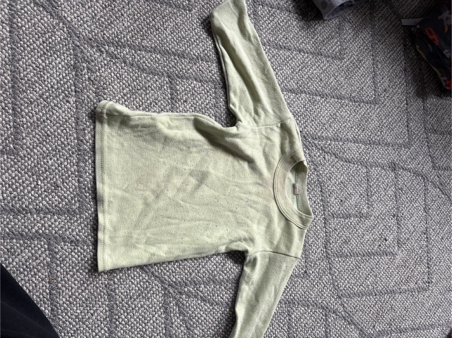 This is a light green long sleeve top. It's made of a soft cotton blend. It would be useful for layering on cooler days. 2T