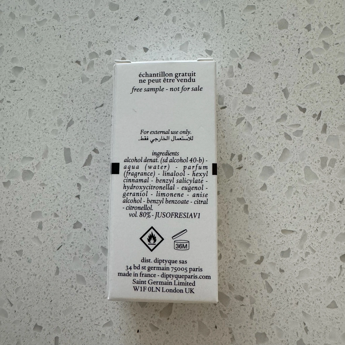 Two sample size Diptyque Eau de Parfum and Eau de Toilette.