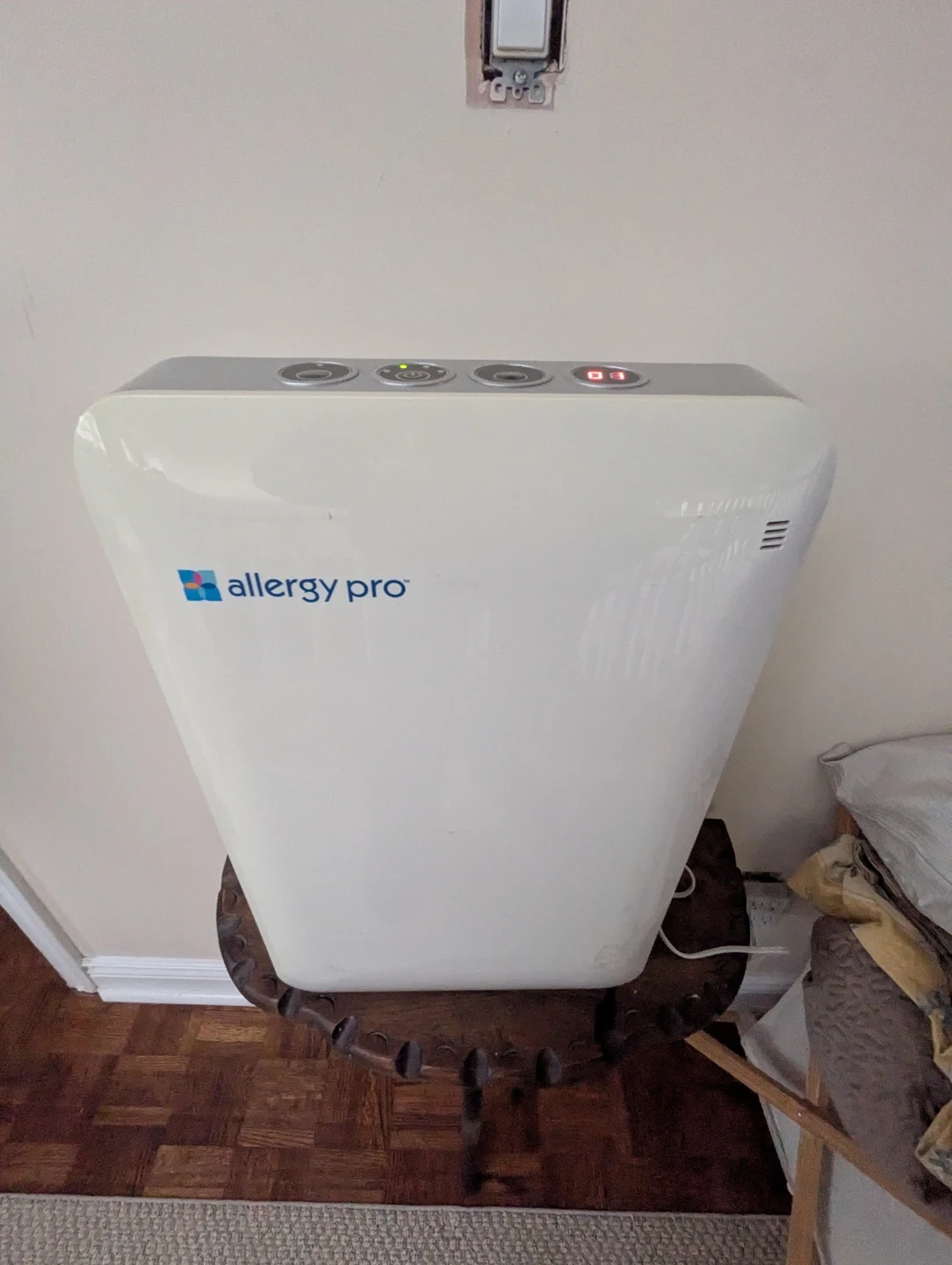Selling an Allergy Pro air purifier, model AP450. It's in great shape and ready to help improve your air quality! Has 4fan speeds, timer for power control and ionizing function. It uses 120V~60Hz 105W 1A. Comes with new, never used HEPA filter.