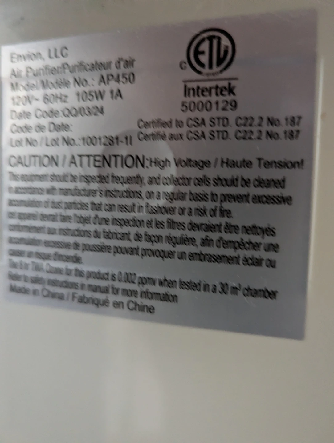 Selling an Allergy Pro air purifier, model AP450. It's in great shape and ready to help improve your air quality! Has 4fan speeds, timer for power control and ionizing function. It uses 120V~60Hz 105W 1A. Comes with new, never used HEPA filter.