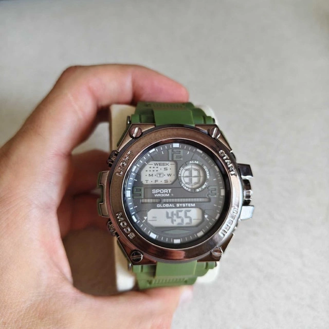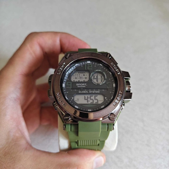 This big, rugged watch is designed to withstand the elements while keeping you on time! Featuring a durable green rubber strap, it's perfect for outdoor adventures or everyday wear. It's brand new and ready for a new wrist to call home. Specifications: Style: Sport, Strap Material: Green Rubber, Features: Digital Display, multiple functions such as time, day, date, alarm, and stopwatch. If you're reading this, it's still available! Pick up in Halifax. I have other options available, check my ads by pressing "Seller details" below.