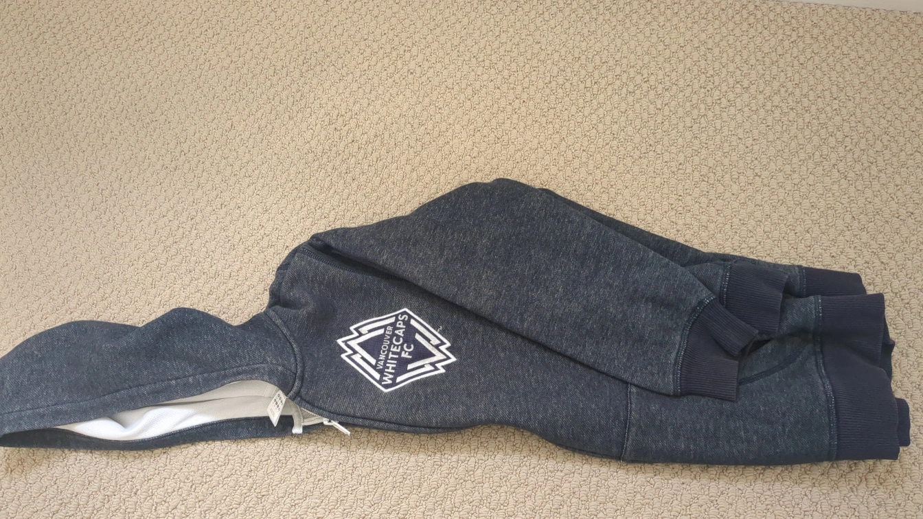 Here's an Adidas hoodie featuring the Vancouver Whitecaps FC logo. It's in great shape and ready for a new home! Perfect for any young soccer fan. Fits 11 to 12 years old. Pick up Nanaimo Skytrain Station.