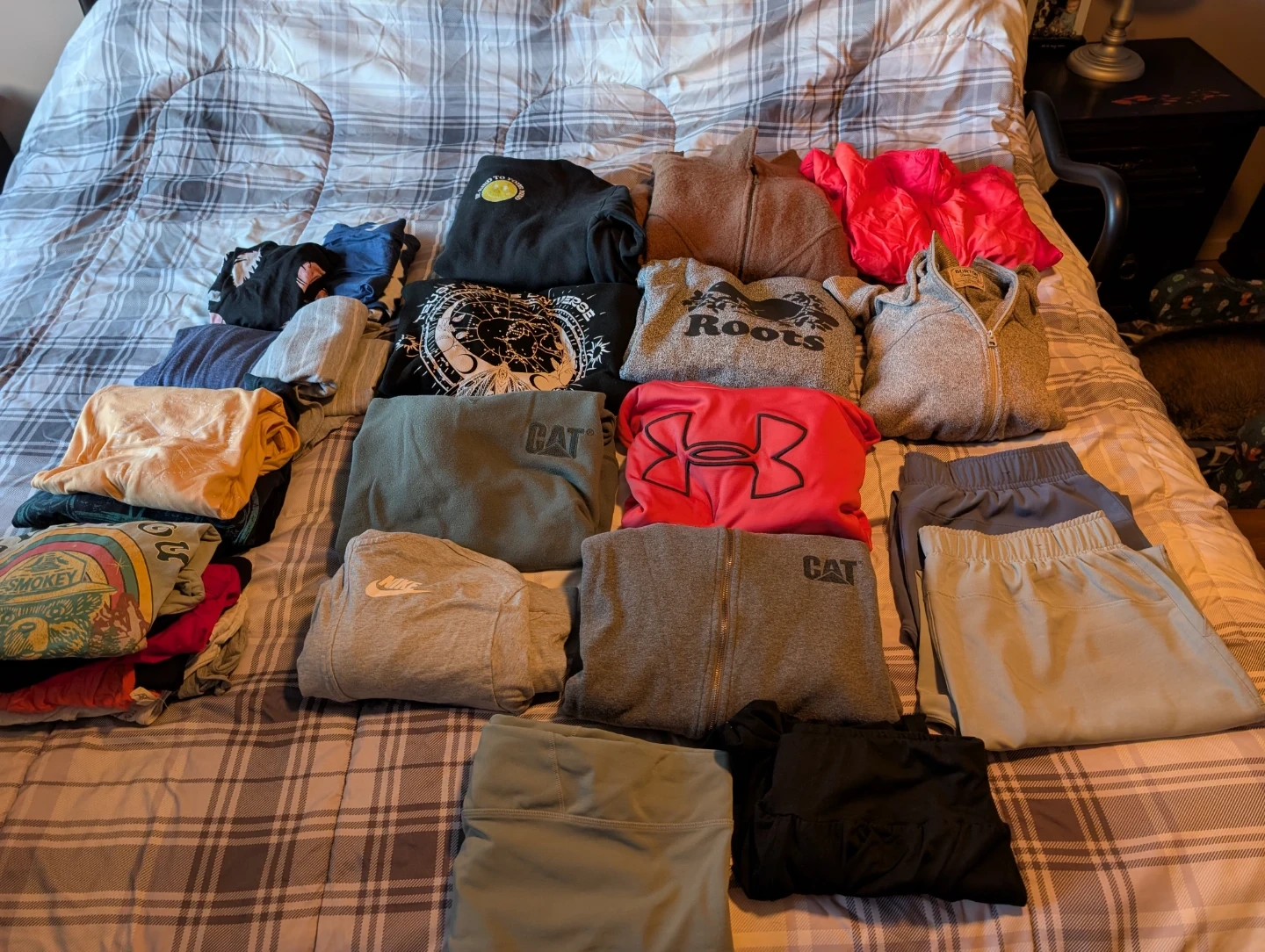12 t-shirts 3 summer dresses 1 short outfit 10 sweaters 4 pairs of pants anywhere from large-xl asking $50 or best offer