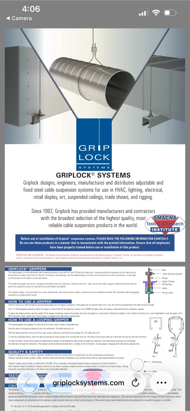 New Griplock Systems steel cable, 400 feet on the spool. Item GLHW24G500. This cable is good for suspension systems like in HVAC, lighting, electrical, retail display, art, suspended ceilings, and rigging.