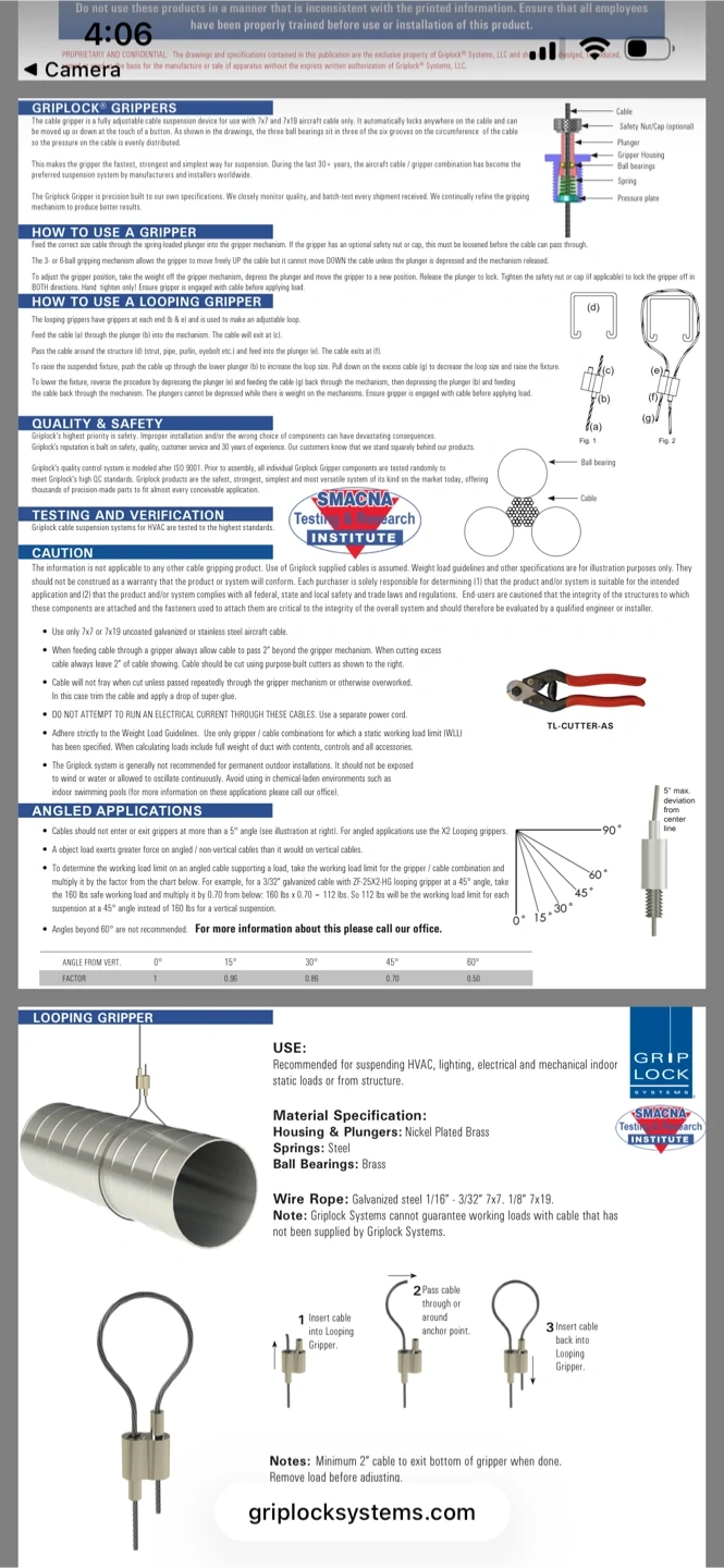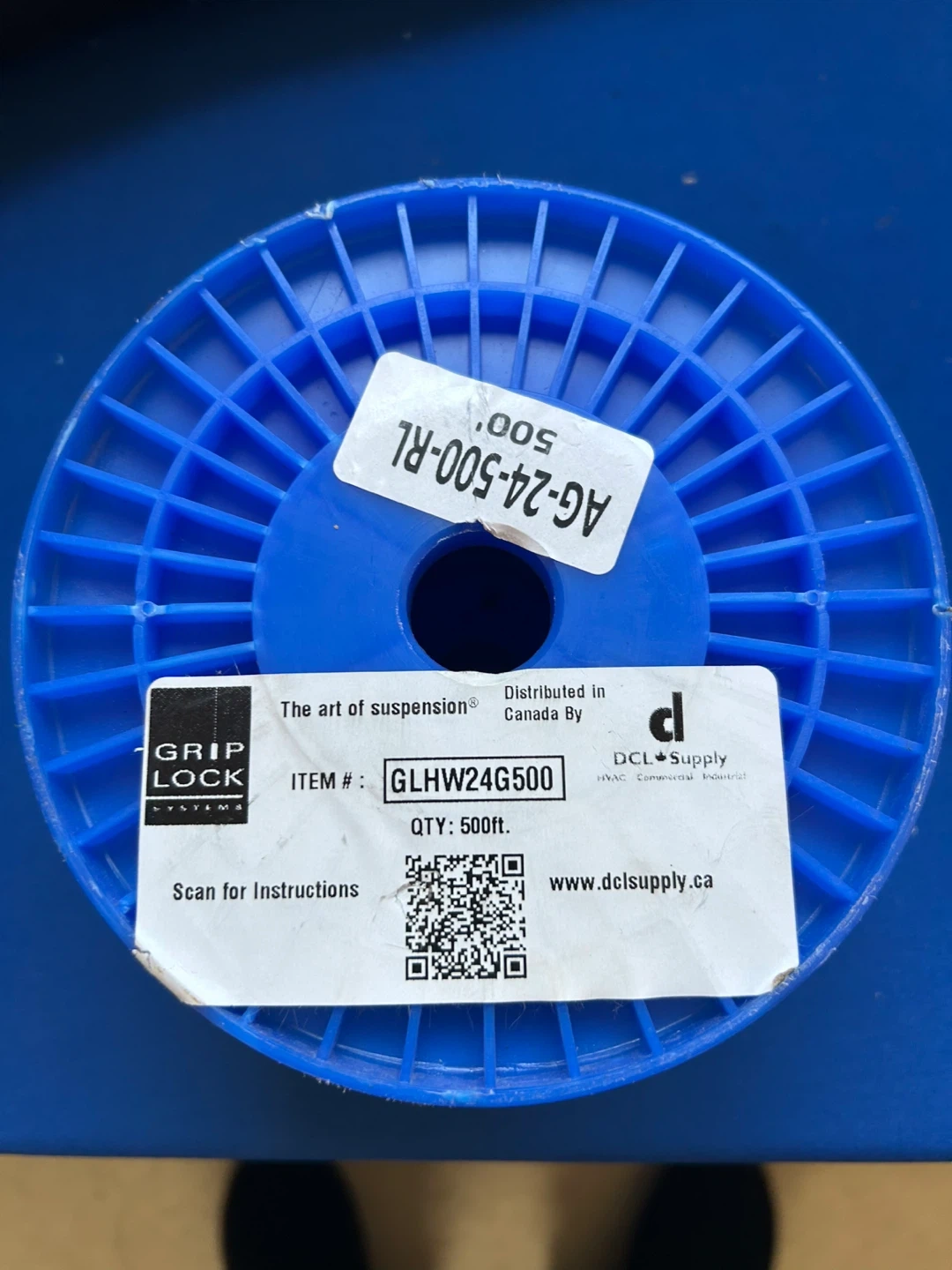 New Griplock Systems steel cable, 400 feet on the spool. Item GLHW24G500. This cable is good for suspension systems like in HVAC, lighting, electrical, retail display, art, suspended ceilings, and rigging.