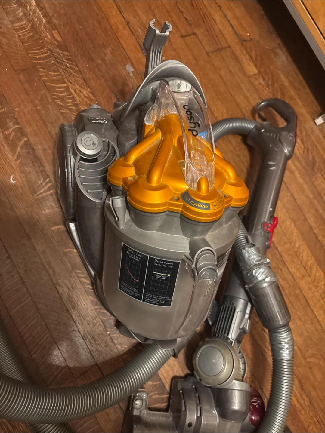 This is a Dyson DC23 Stowaway vacuum cleaner. It features a powerful cyclonic system for effective cleaning. Viacom is very strong and works great