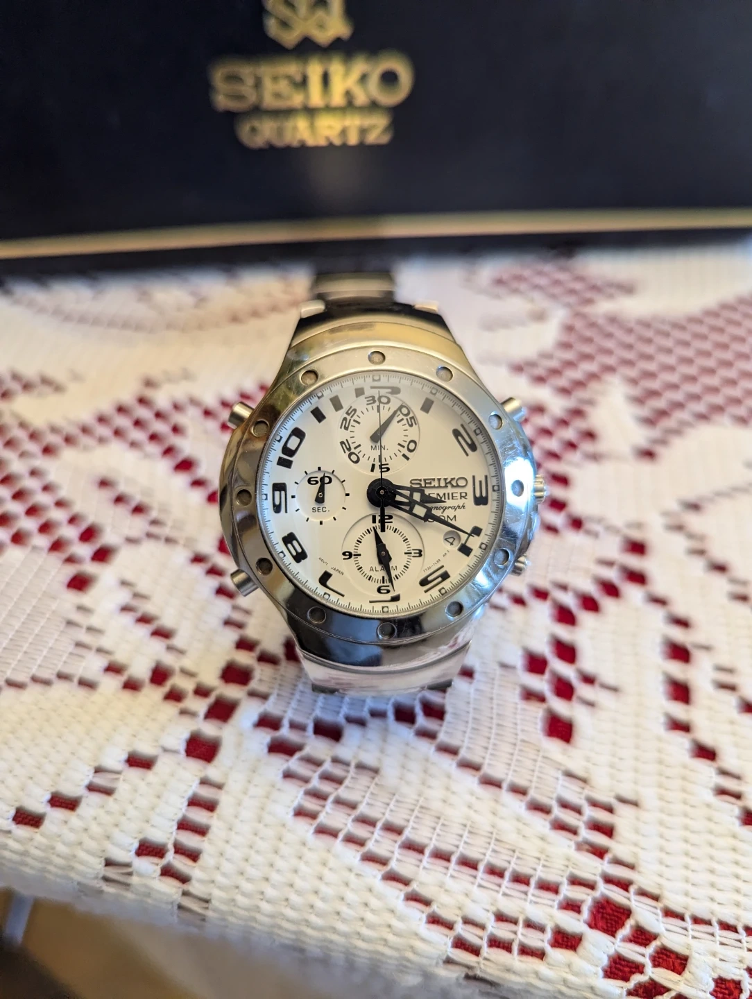 GENTLE USED SEIKO PREMIER ANALOG QUARTZ FOR MEN, 100 M CHRONOGRAPH, DATE, ALARM,STOP WATCH, BATTERY WARNING, I AM THE ORIGINAL OWNER, BOUGHT IT FROM DUBAI, 210 DOLLARS OR BEST OFFER,MY LOCATION ISLINGTON AND MAJERMACKEZIE, THANKS