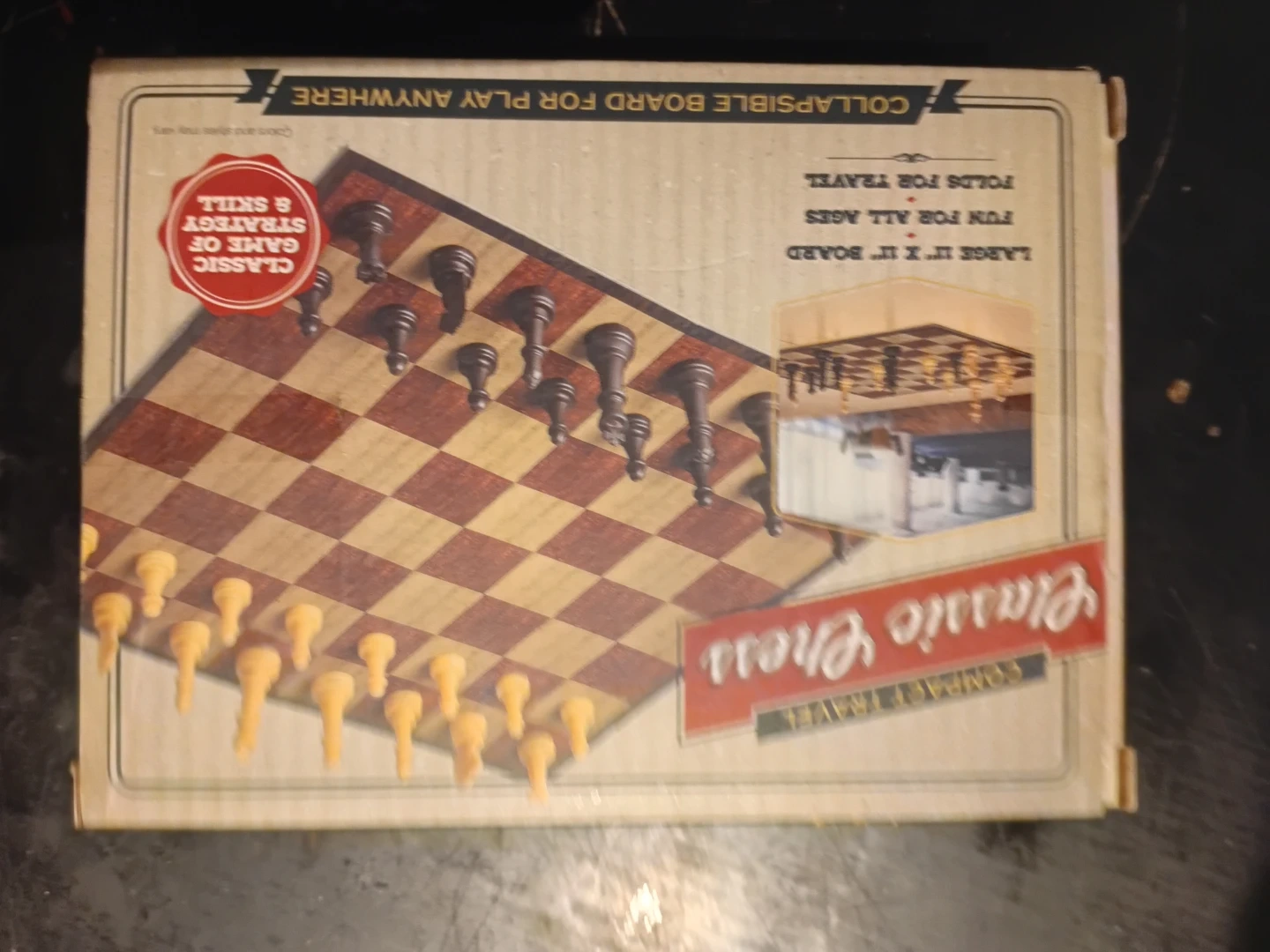 This classic chess set is perfect for travel, featuring a collapsible board. It's a large 11" x 11" board for fun strategy and skill development. Suitable for all ages!