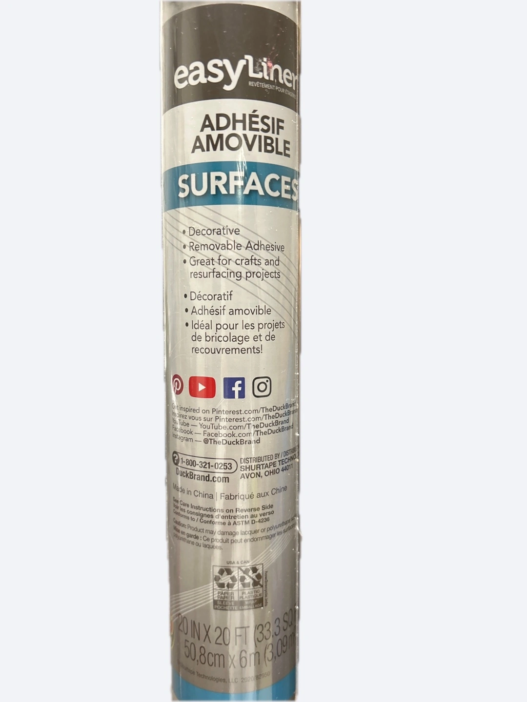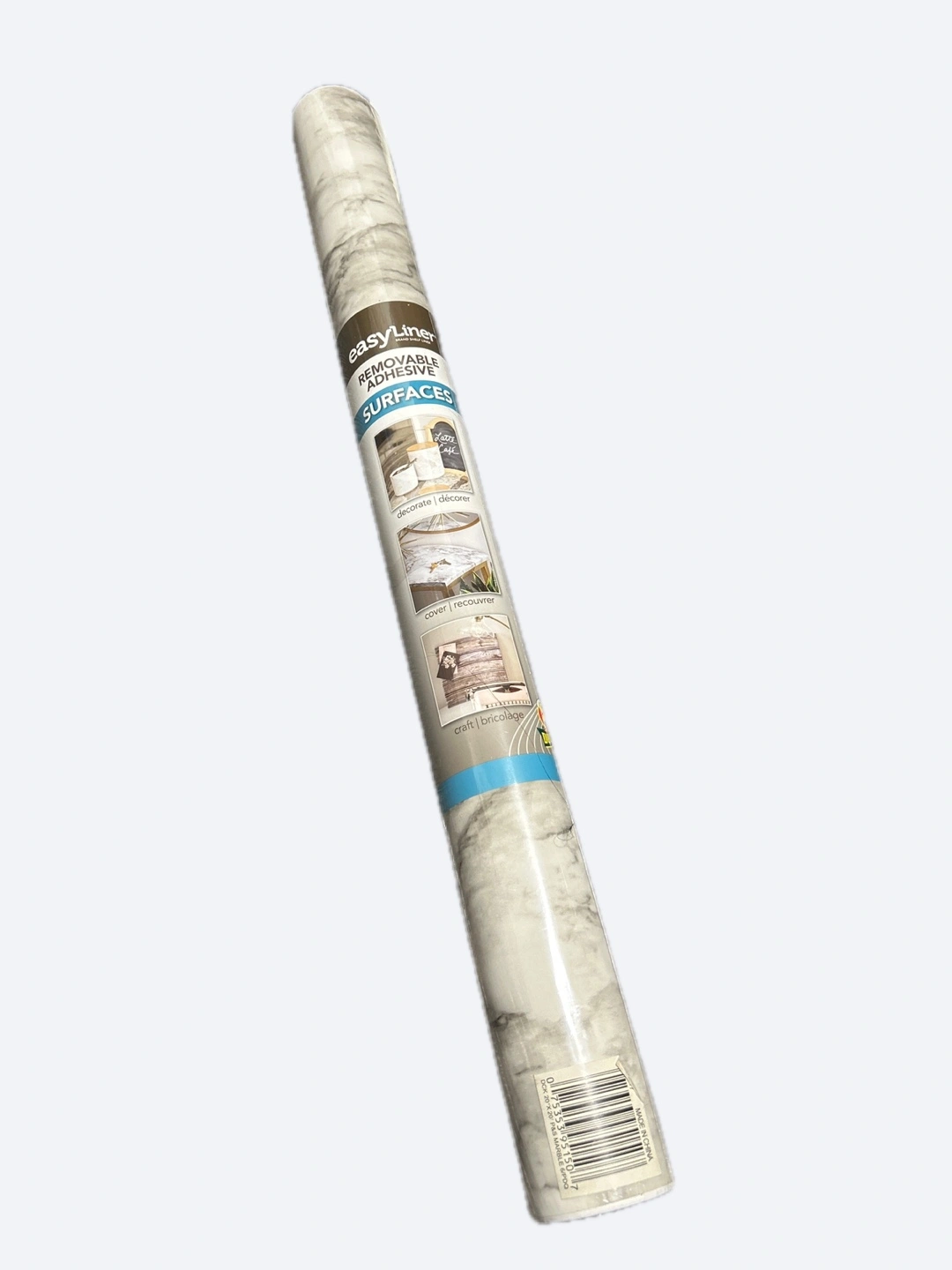This is an easyLiner brand removable adhesive shelf liner. It's in a marble pattern and is 20 inches wide by 20 feet long. It's great for decorating, covering surfaces, and crafts. It's removable!