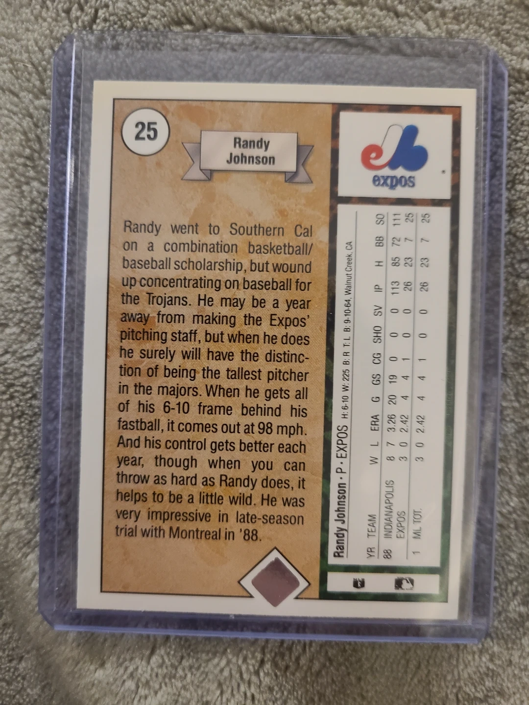 1989 Topps Baseball Card - Randy Johnson - Expos