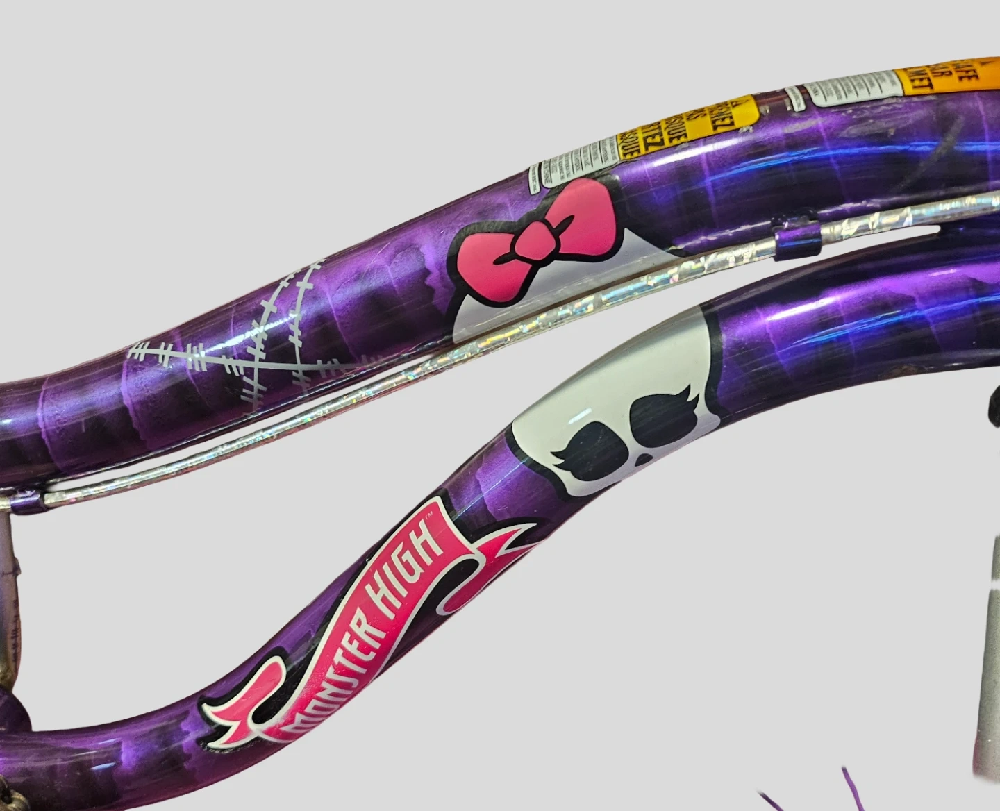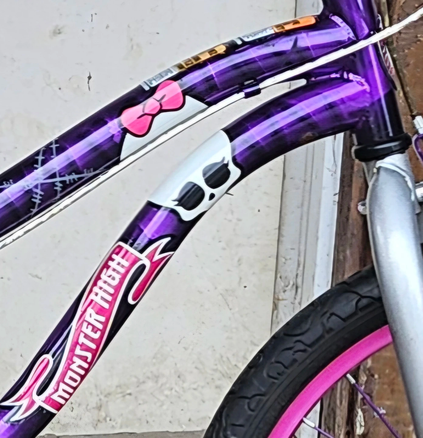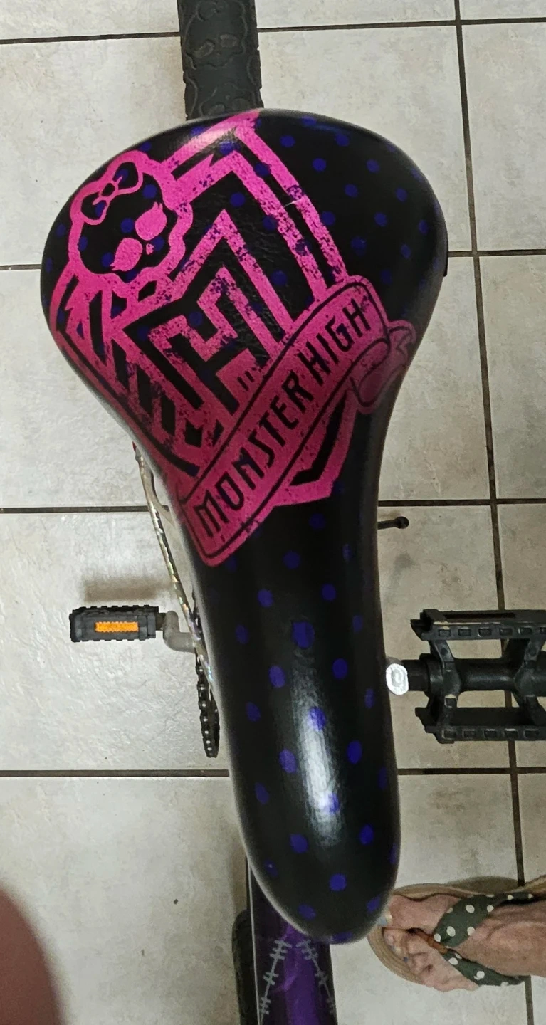 Selling a Monster High girls' bike in purple and pink! It's a fun and stylish ride for any Monster High fan. The bike features Monster High graphics and colours. Great for kids who love the series and want a unique bike.