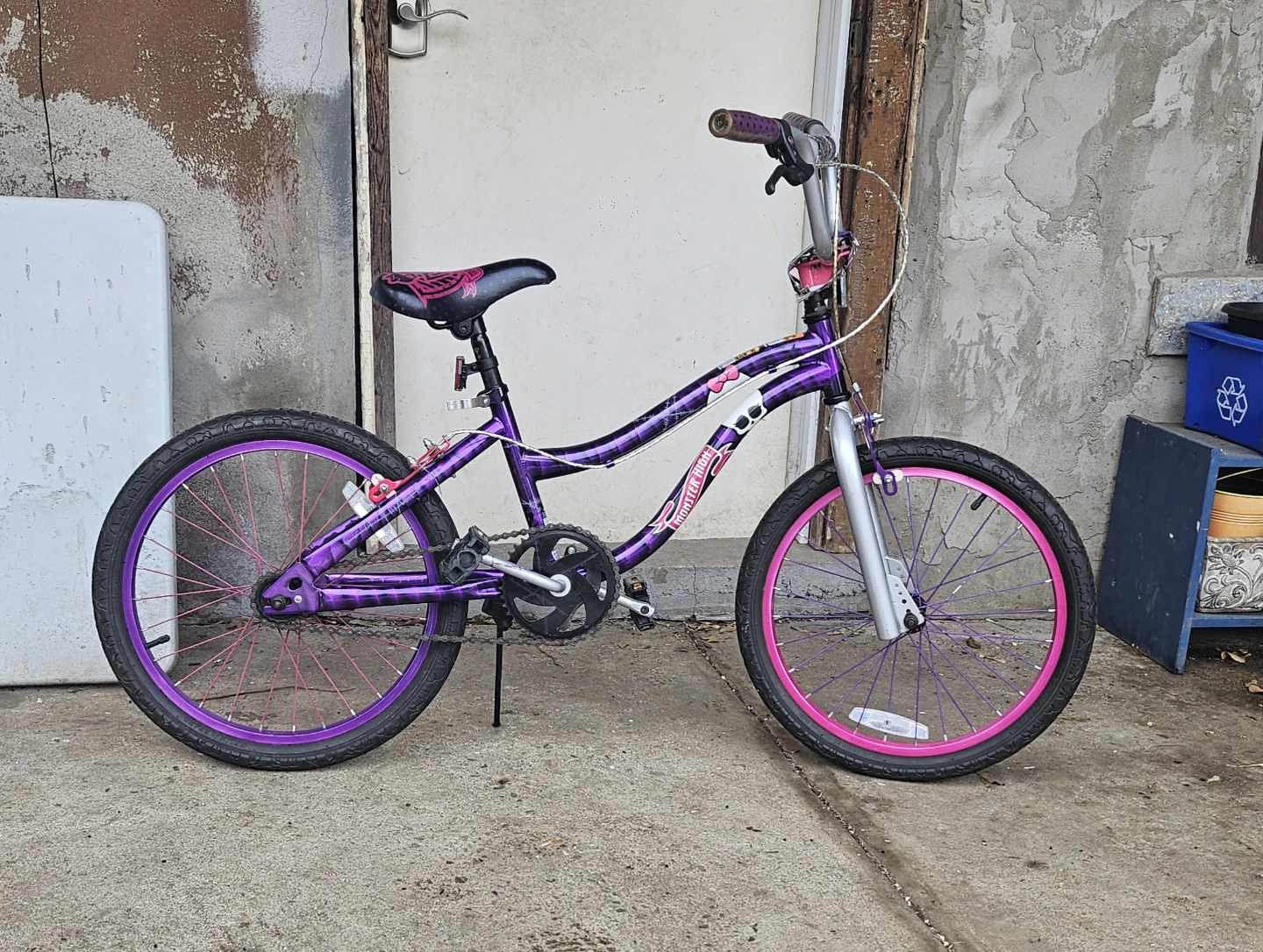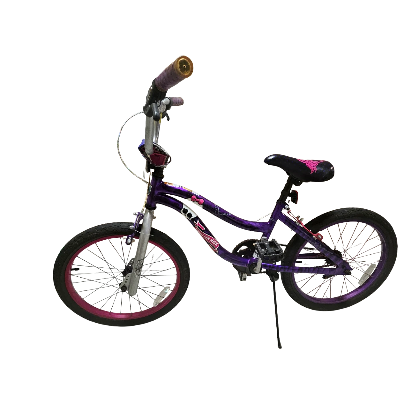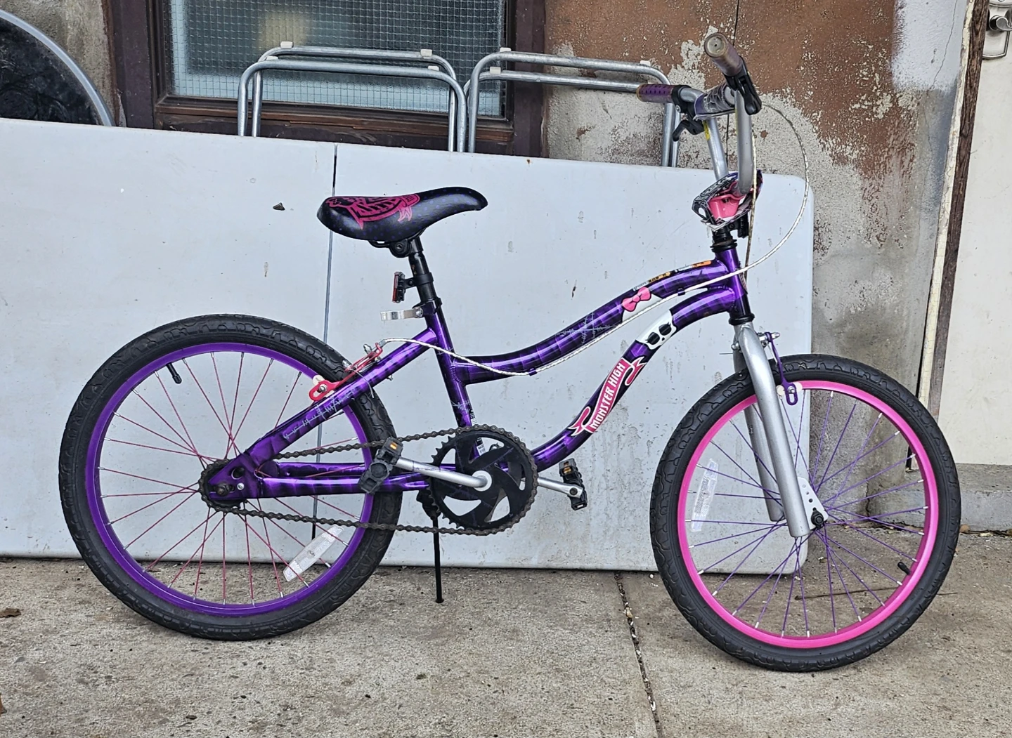 Selling a Monster High girls' bike in purple and pink! It's a fun and stylish ride for any Monster High fan. The bike features Monster High graphics and colours. Great for kids who love the series and want a unique bike.