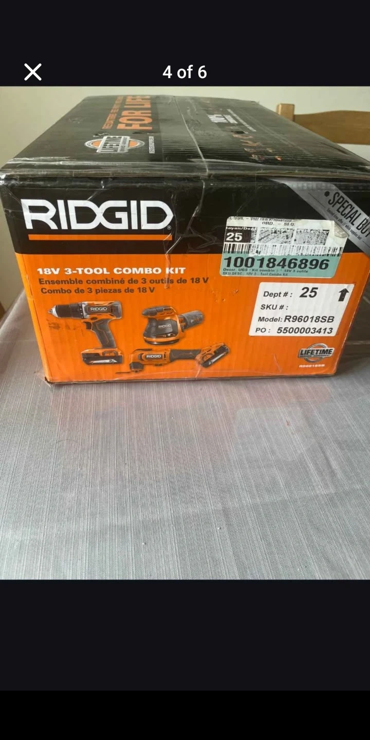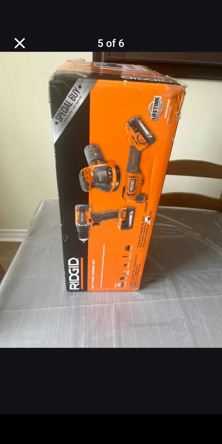 RIDGID 18V 3-tool combo kit. Includes drill, sander, and impact driver. This set is ideal for a variety of home renovation projects. Comes with the original packaging. Not opened cash only