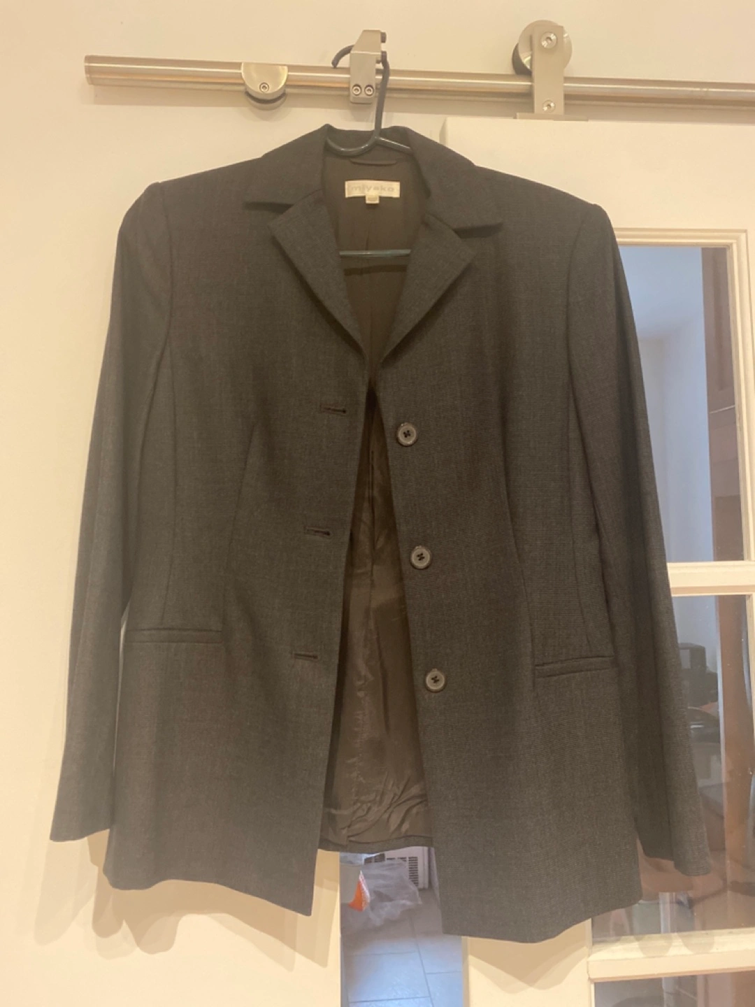 Brand new high quality Classic women's gray blazer. Four button closure. Long sleeves. Good for work or special occasions. High quality!