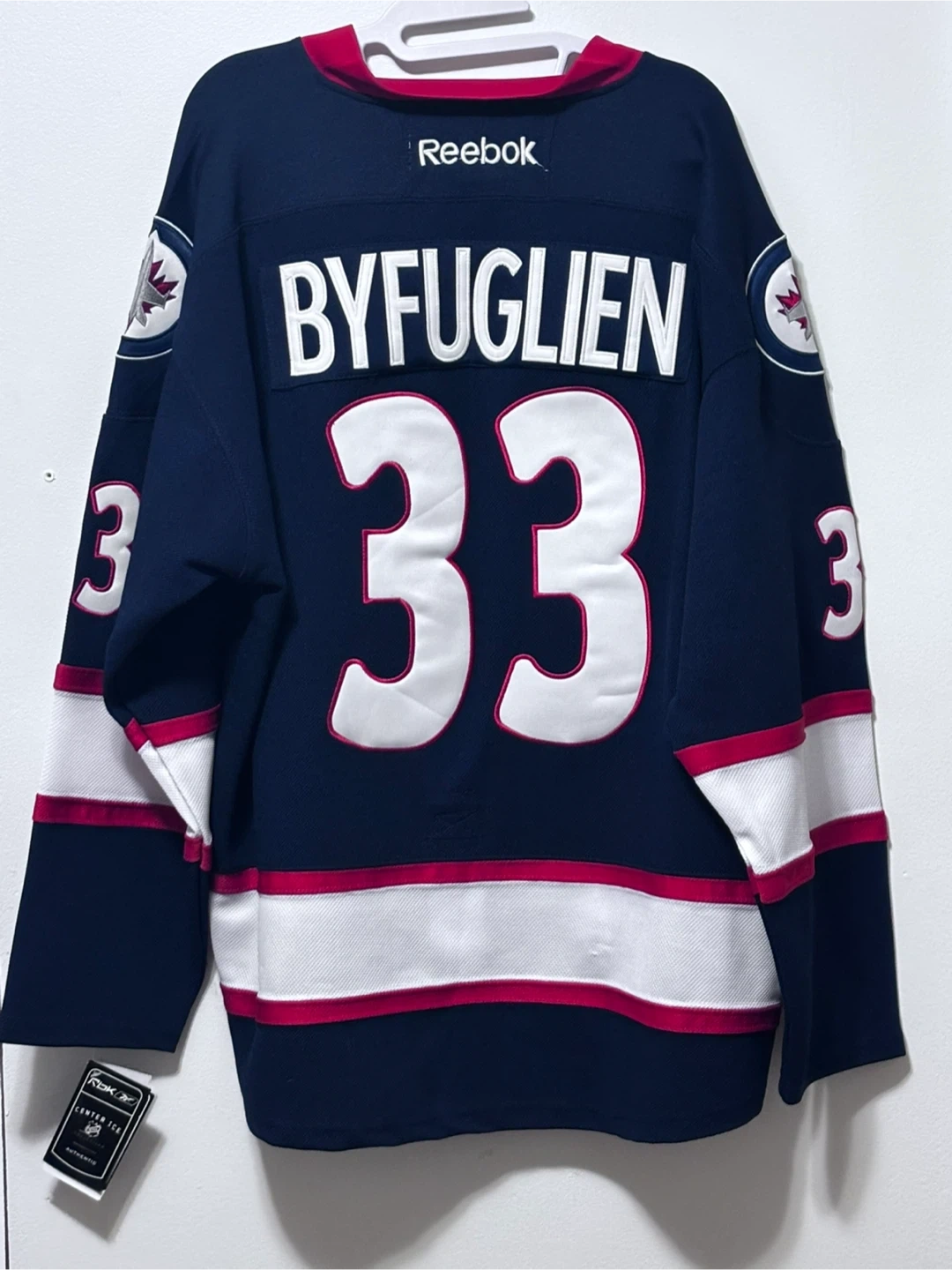 Authentic Reebok Center Ice collection hockey jersey for the Winnipeg Jets. Features player number 33 and name Byfuglien. Size 52 (men’s large ) and made in Canada.