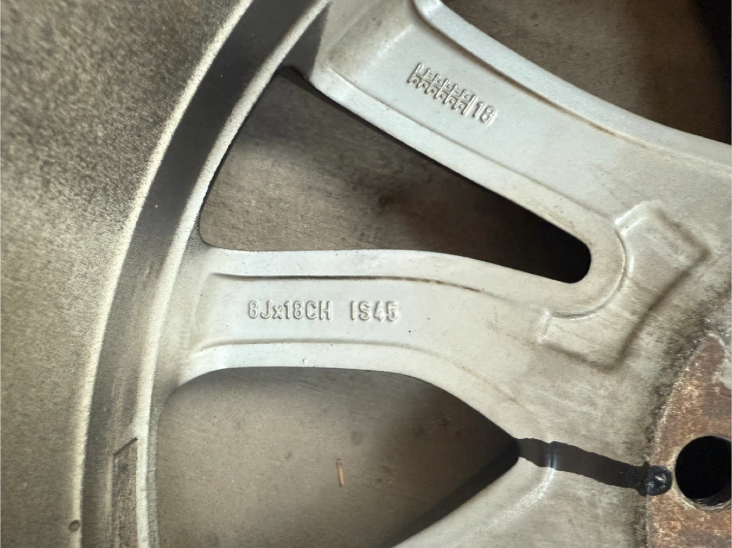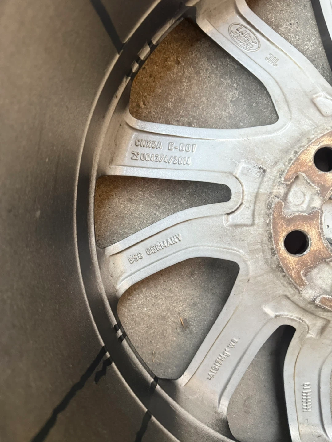 Enhance your ride with this set of four used Land Rover rims, each boasting a sleek 8Jx18CH IS45 design. These rims, manufactured in Germany, feature the part numbers LR021141 and FK7M-1007-TB. The rims are in used condition.