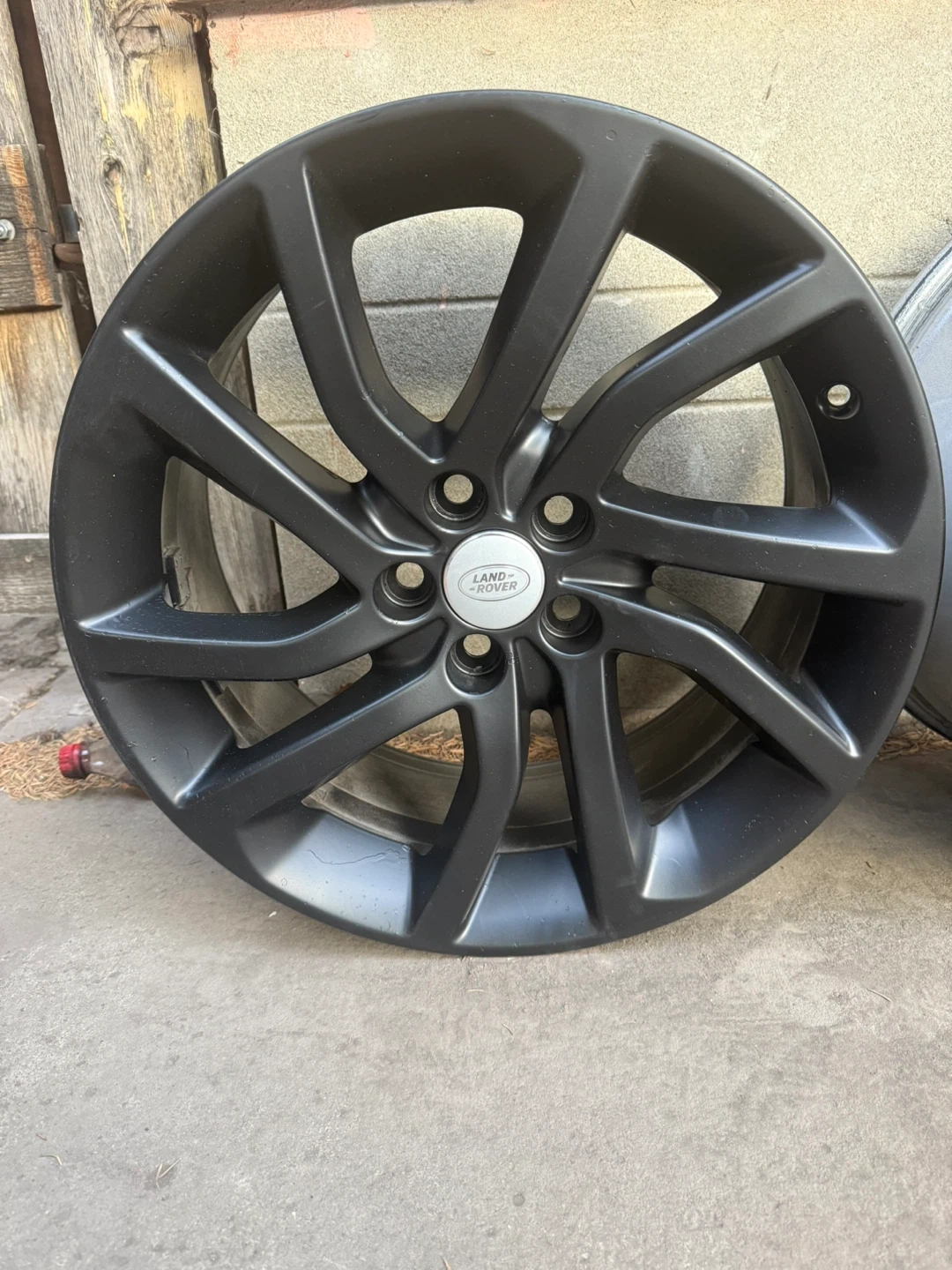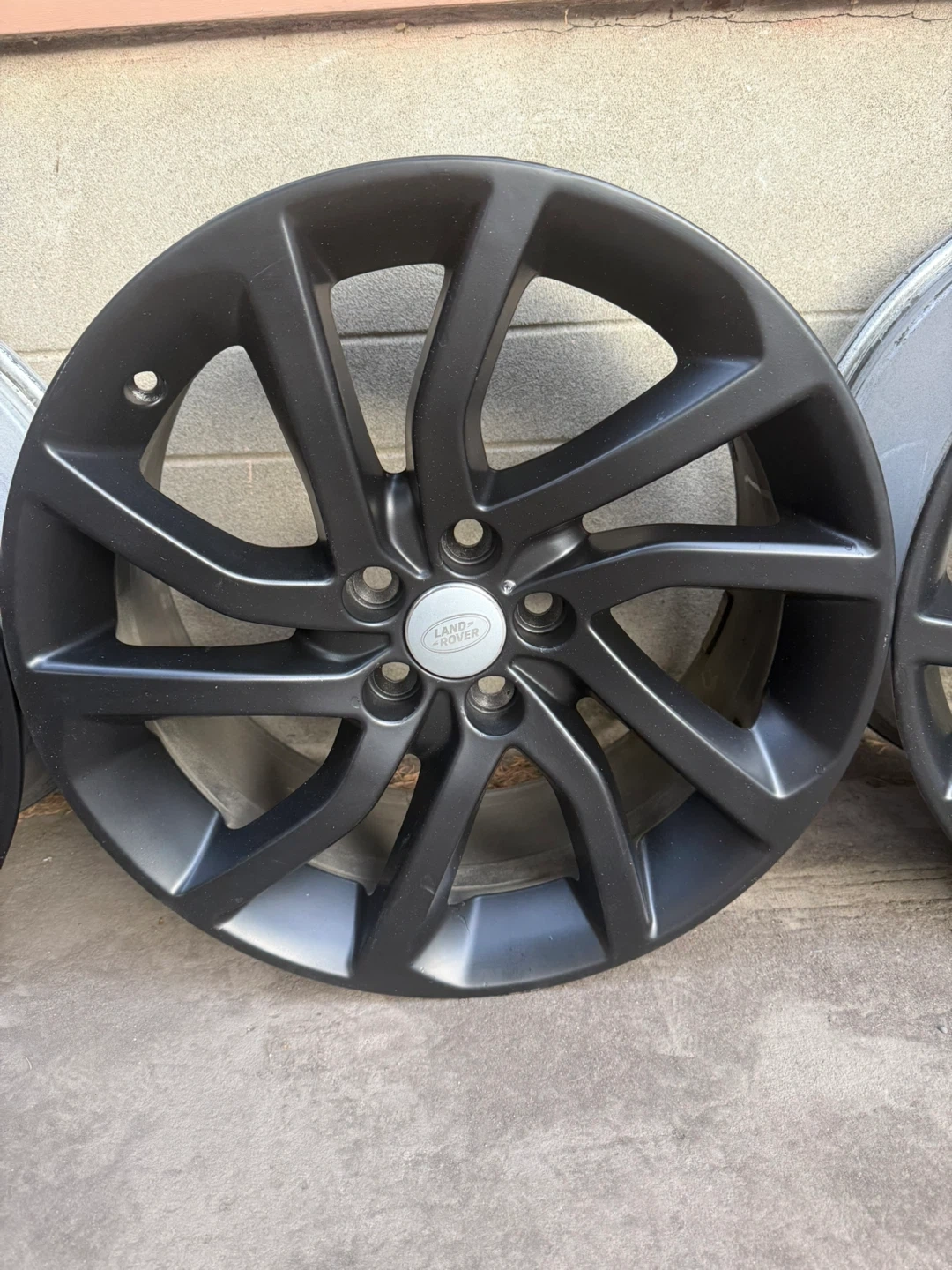 Black Land Rover wheels with a matte finish. Set of 4, some minor scuffs.