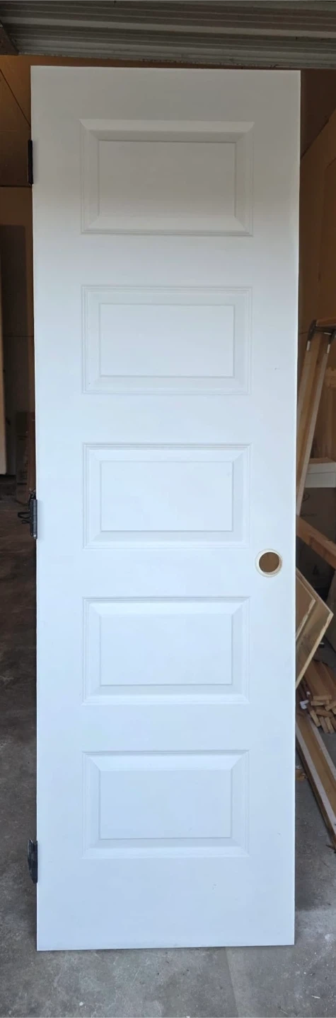 Selling a 24 inch wide white interior door with 5 panels. Lightly used and in excellent condition. Door frames not included.