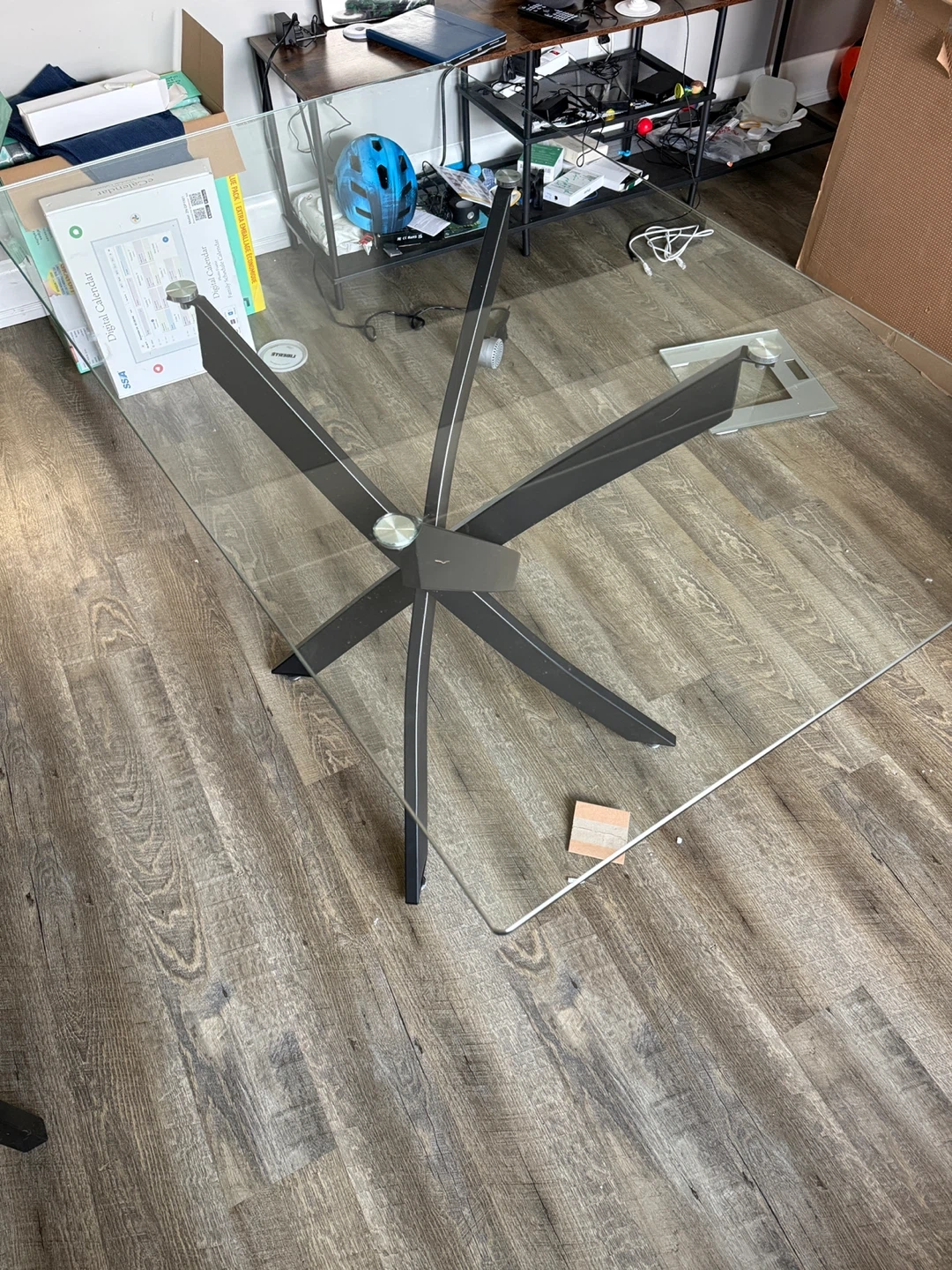 Glass Dining Table with Black Metal Base