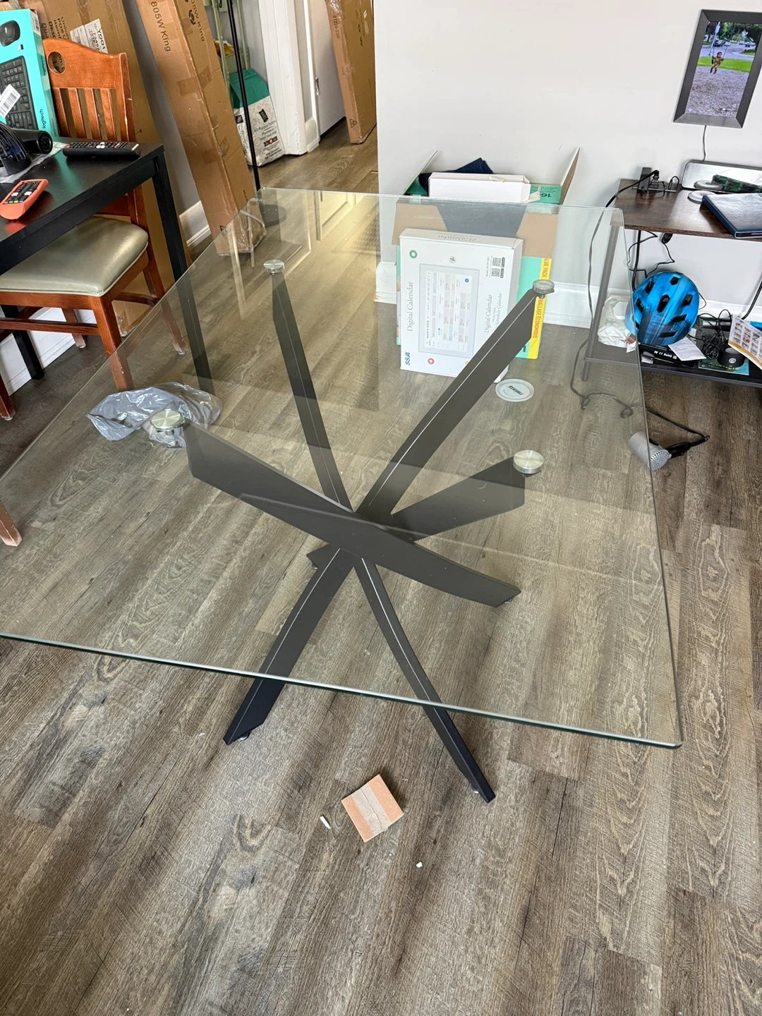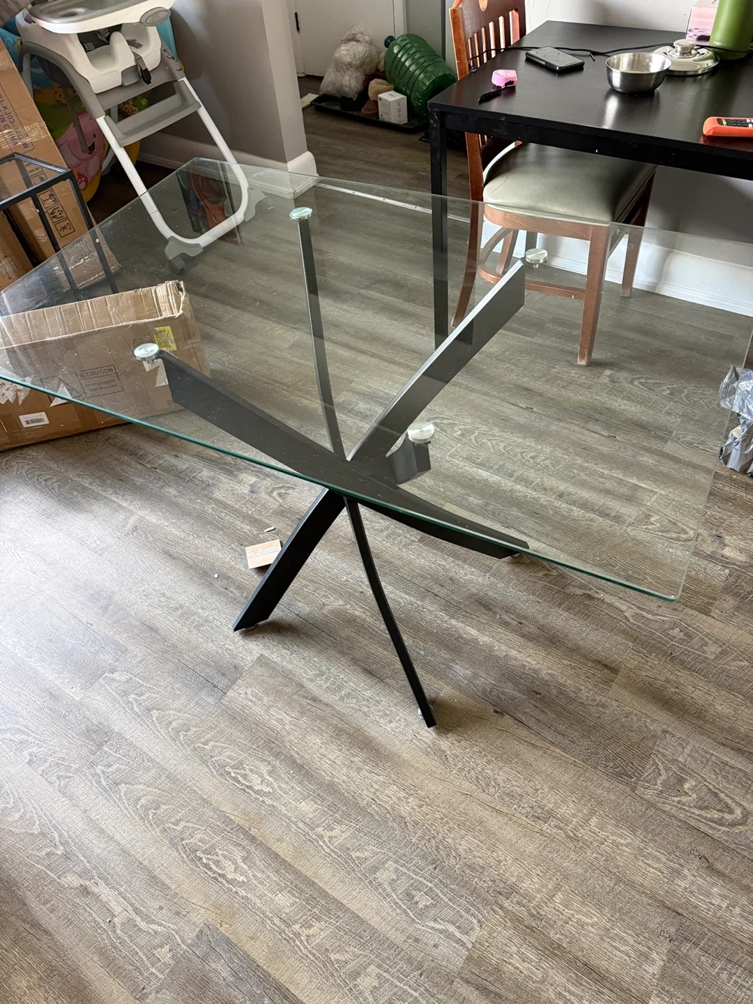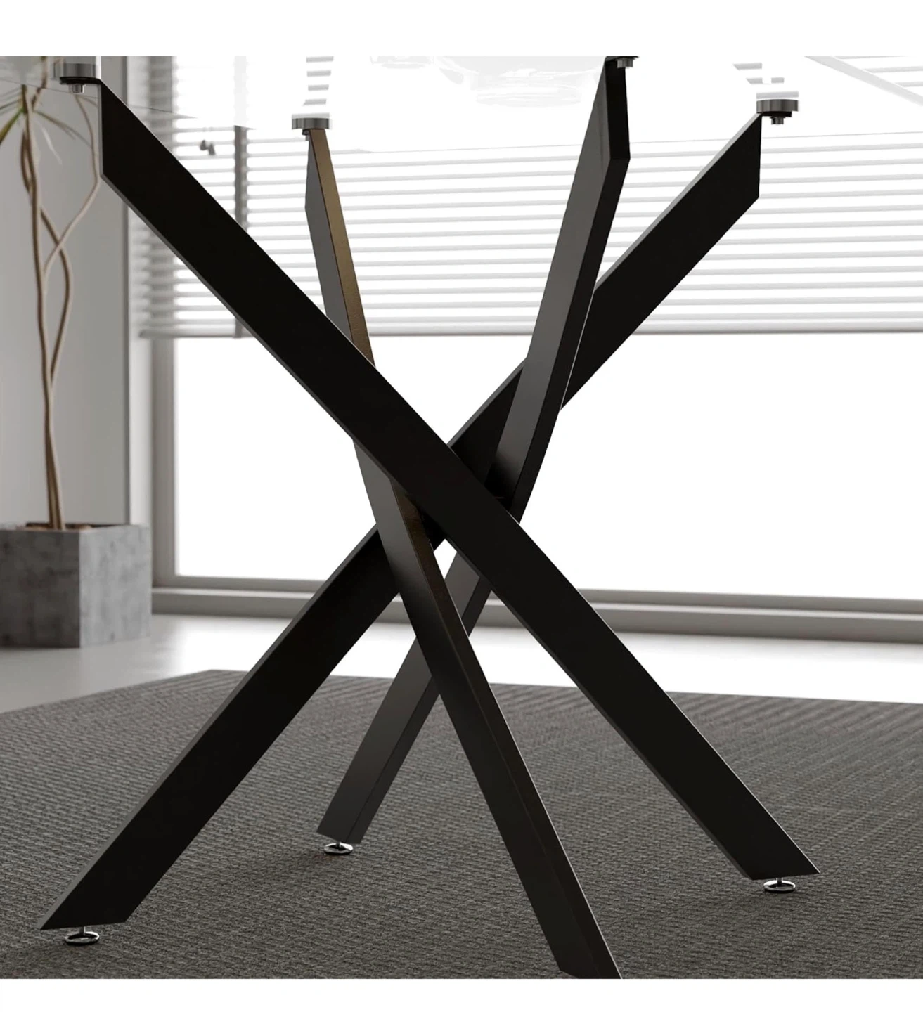 Glass Dining Table with Black Metal Base