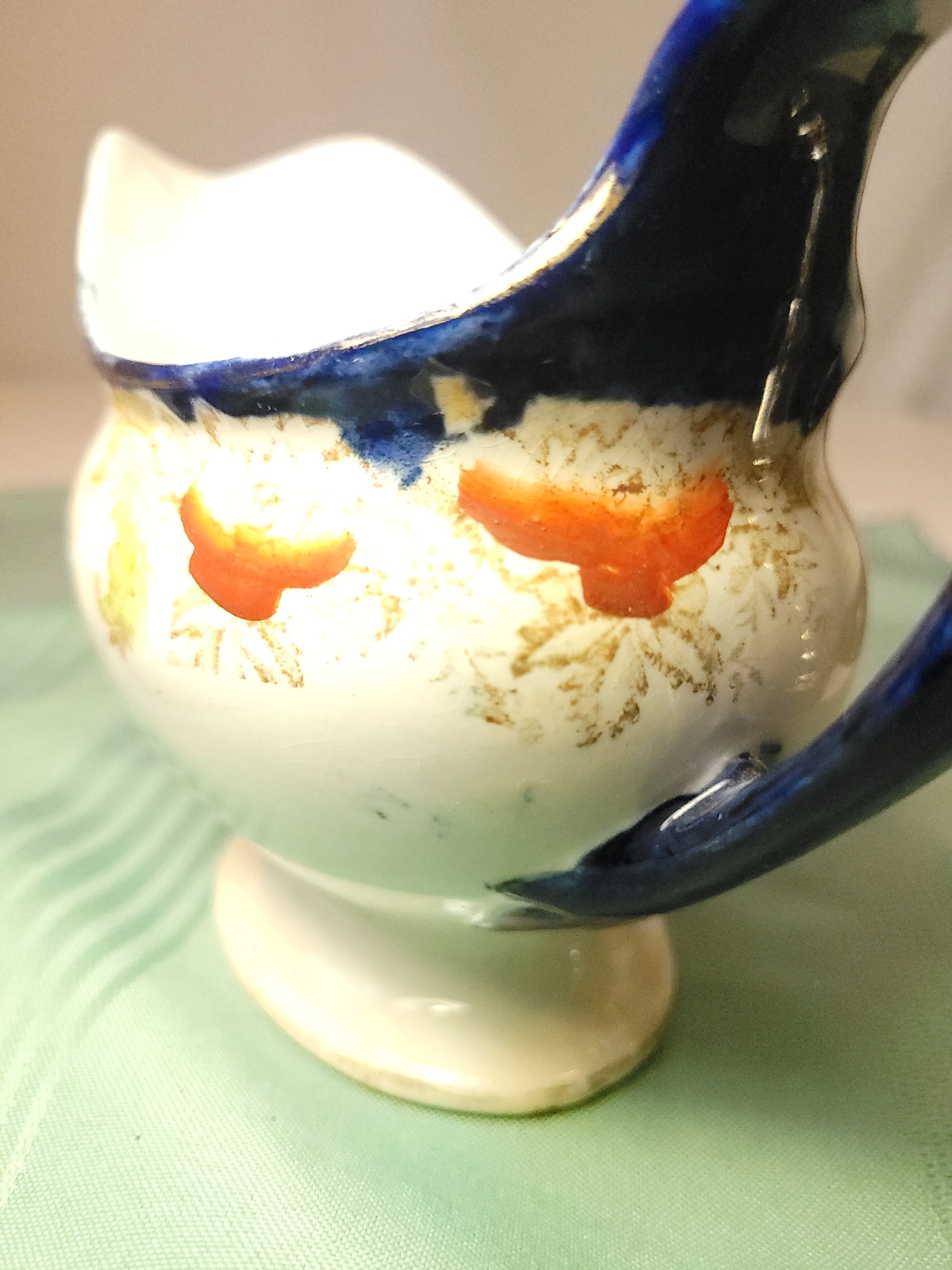 Good Antique condition light wear. As is common with authentic ironstone of this age, there is some fine age-related crazing throughout the glaze and minor shelf wear on the unglazed bottom foot. The transfer remains vibrant, and the hand-painted orange details are well-preserved. Please review all high-resolution photos for a detailed view of the surface.