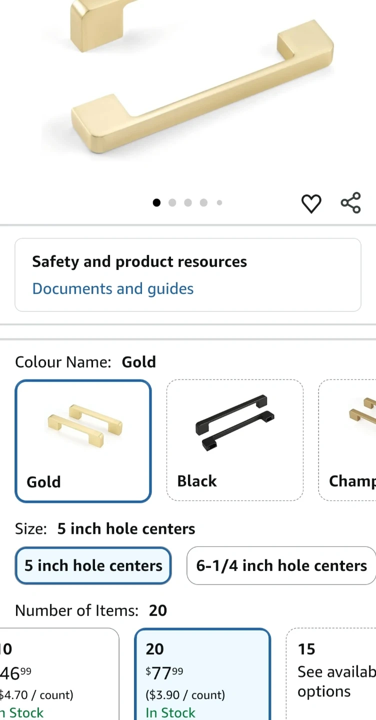 Gold Cabinet Drawer Pulls - 5 Inch Hole Centers