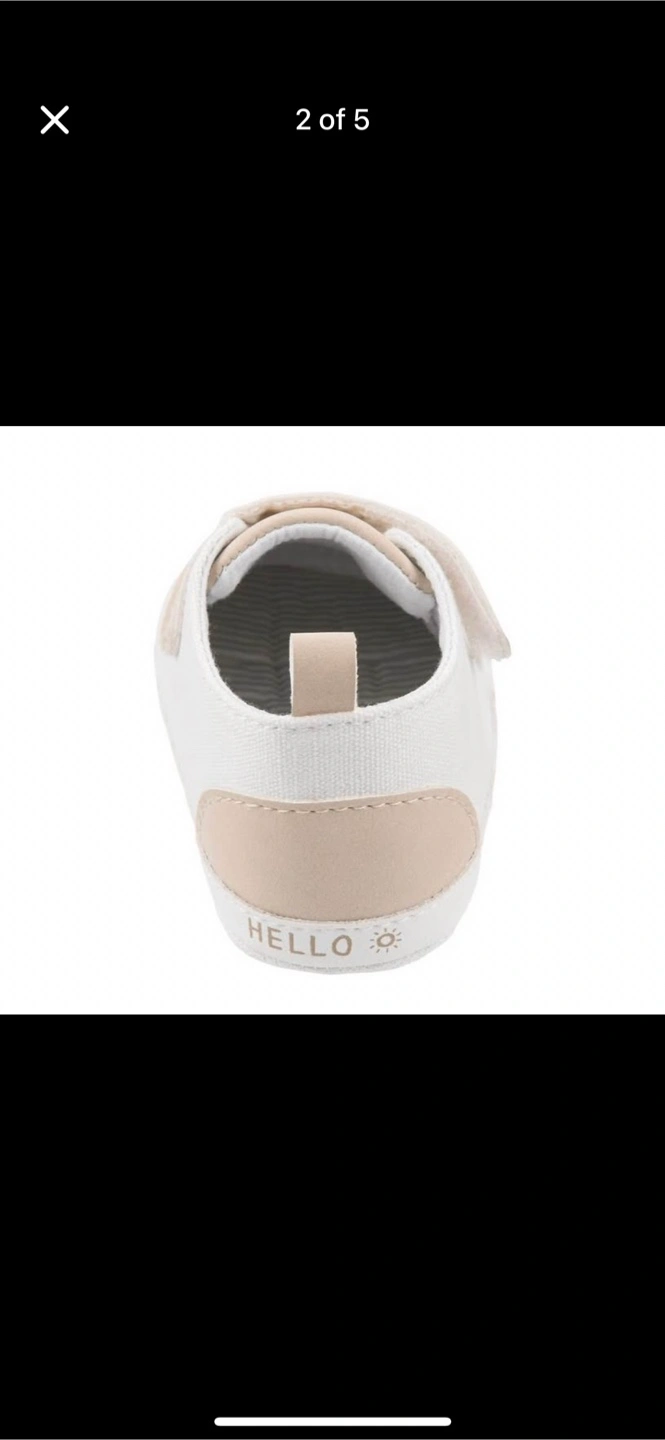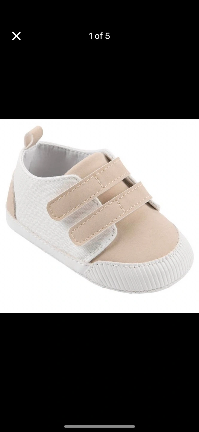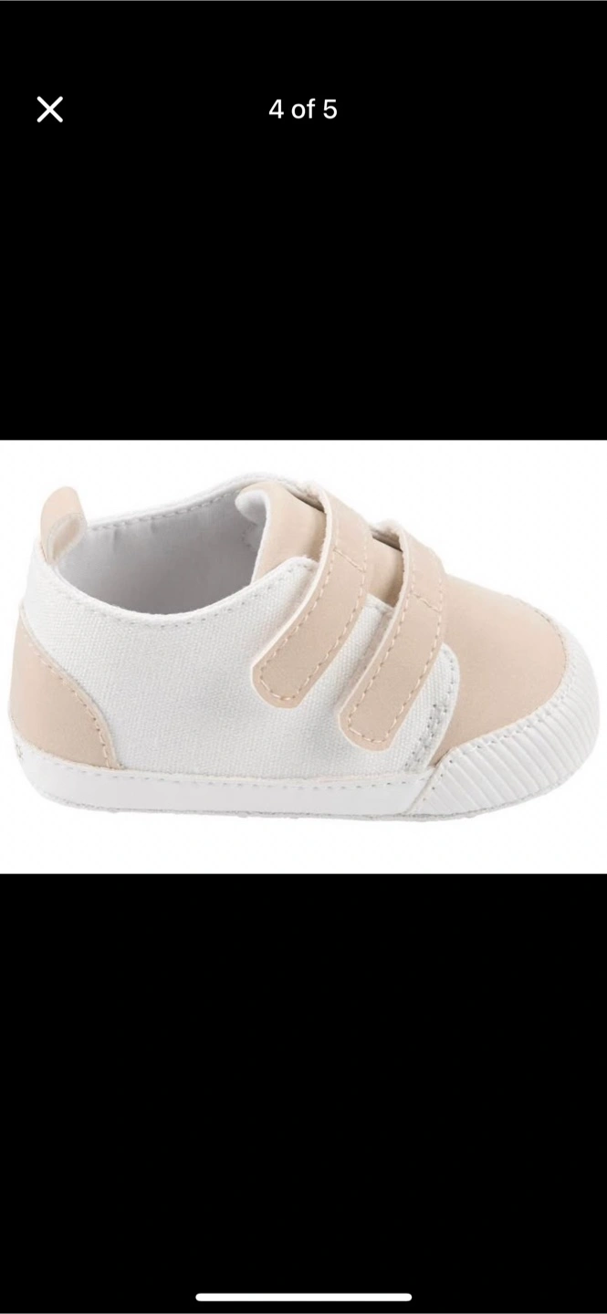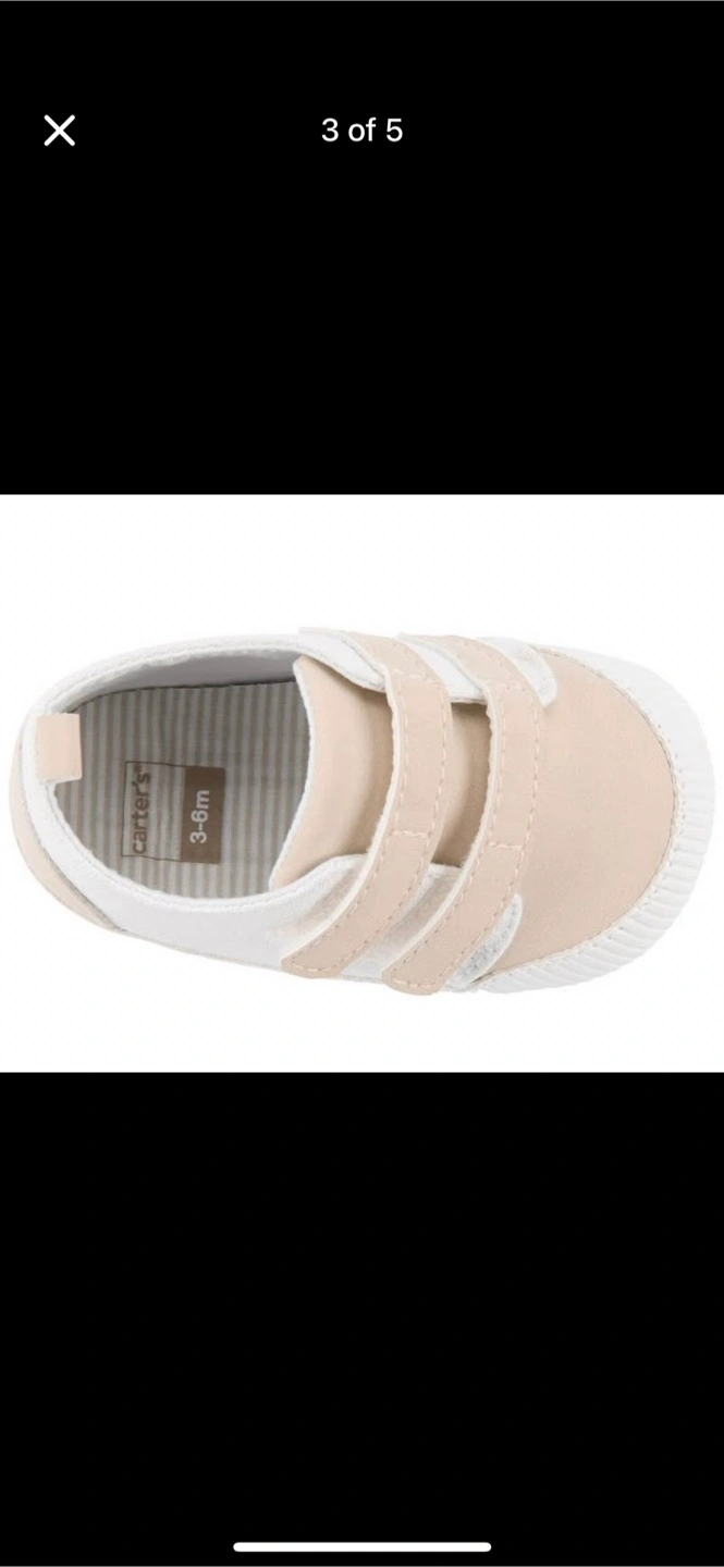 Super cute Carter's baby shoes! These are in a neutral beige and white colour, perfect for any outfit. They're size 3-6 months, and the general size is 0-3 months with a length of 4.25". Great for your little one!