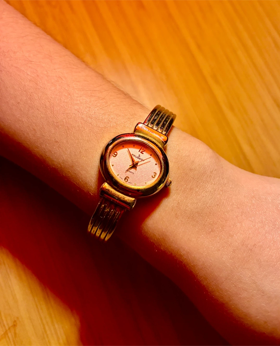 Buy & SellPeugeot Women's Quartz Watch - Gold TonePeugeot Women's Quartz Watch - Gold Tone$25This is a gold-tone Peugeot quartz watch. It features a classic oval face with a rose-colored dial. The band is a flexible, ribbed design.ConditionLike newBrandPeugeotWHERE TO MEETCheck LocationView MapSELLERverifiedBarbaraUptown872 reviews0 chats·0 favorites·9 viewsSEND CHAT TO SELLERHi Barbara! I’m interested in your listing.Hi Barbara! I’m interested in your listing.Get the Karrot app to chatSign In to chat