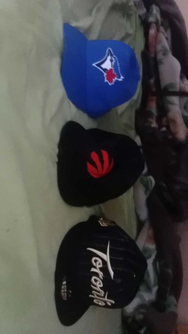 Baseball and basketball hats bundle 60 for all 1 blue jays hat $10 2 red basketball hat $25 3 toronto hat (black) $35 ($65 bundle for all)