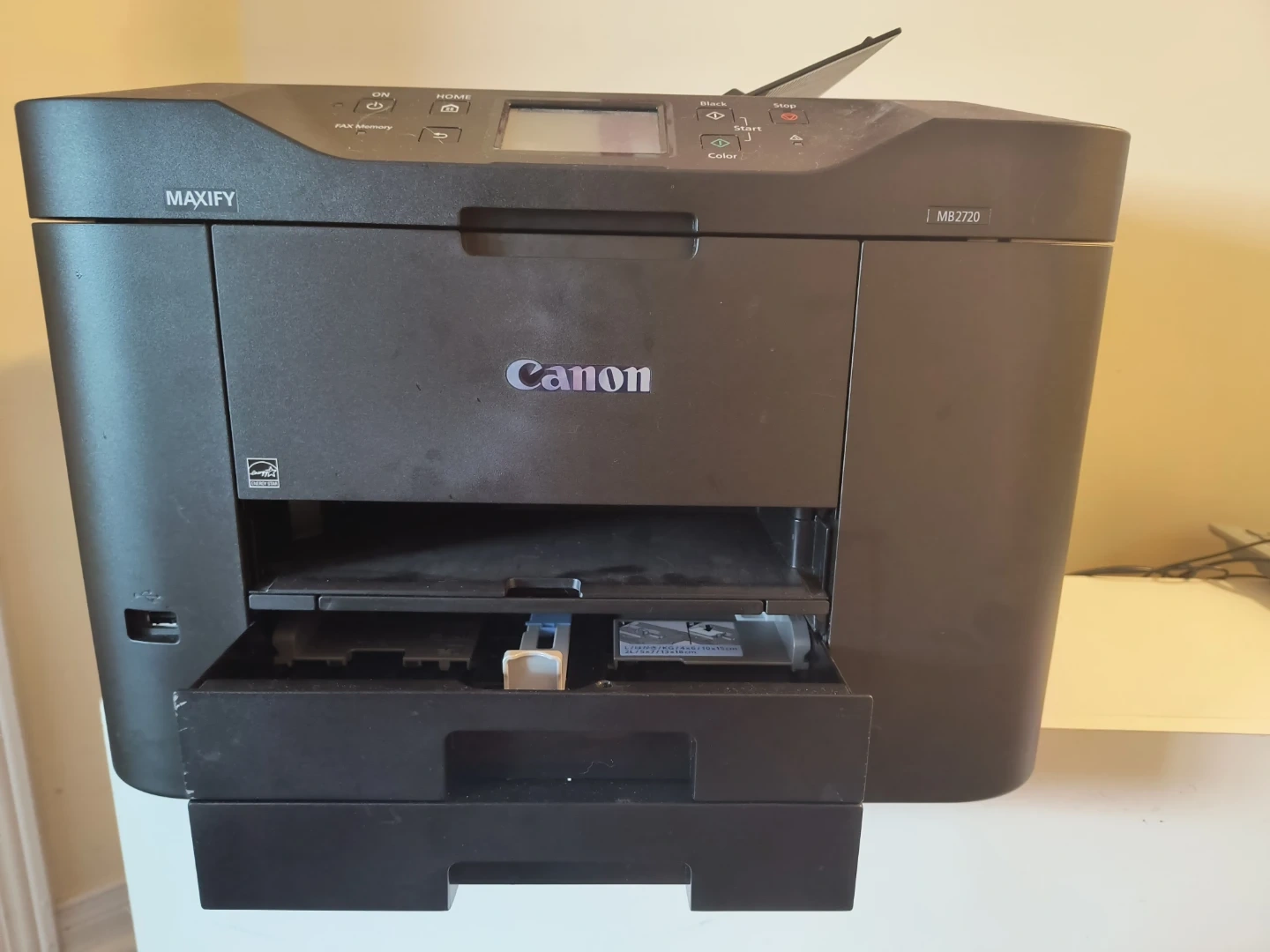 This is a Canon MAXIFY MB2720 All-in-One printer. It's a multi-function device for home or small office use. It supports printing, copying, scanning, and faxing functions.