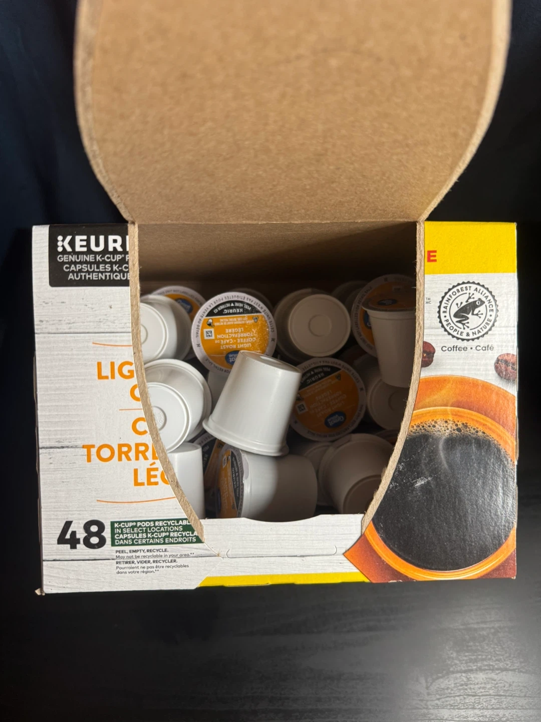 Selling a Keurig coffee maker. It's in good condition and ready to brew your favourite coffee. Comes with a k-cup and almost full box of light roast coffee pods.