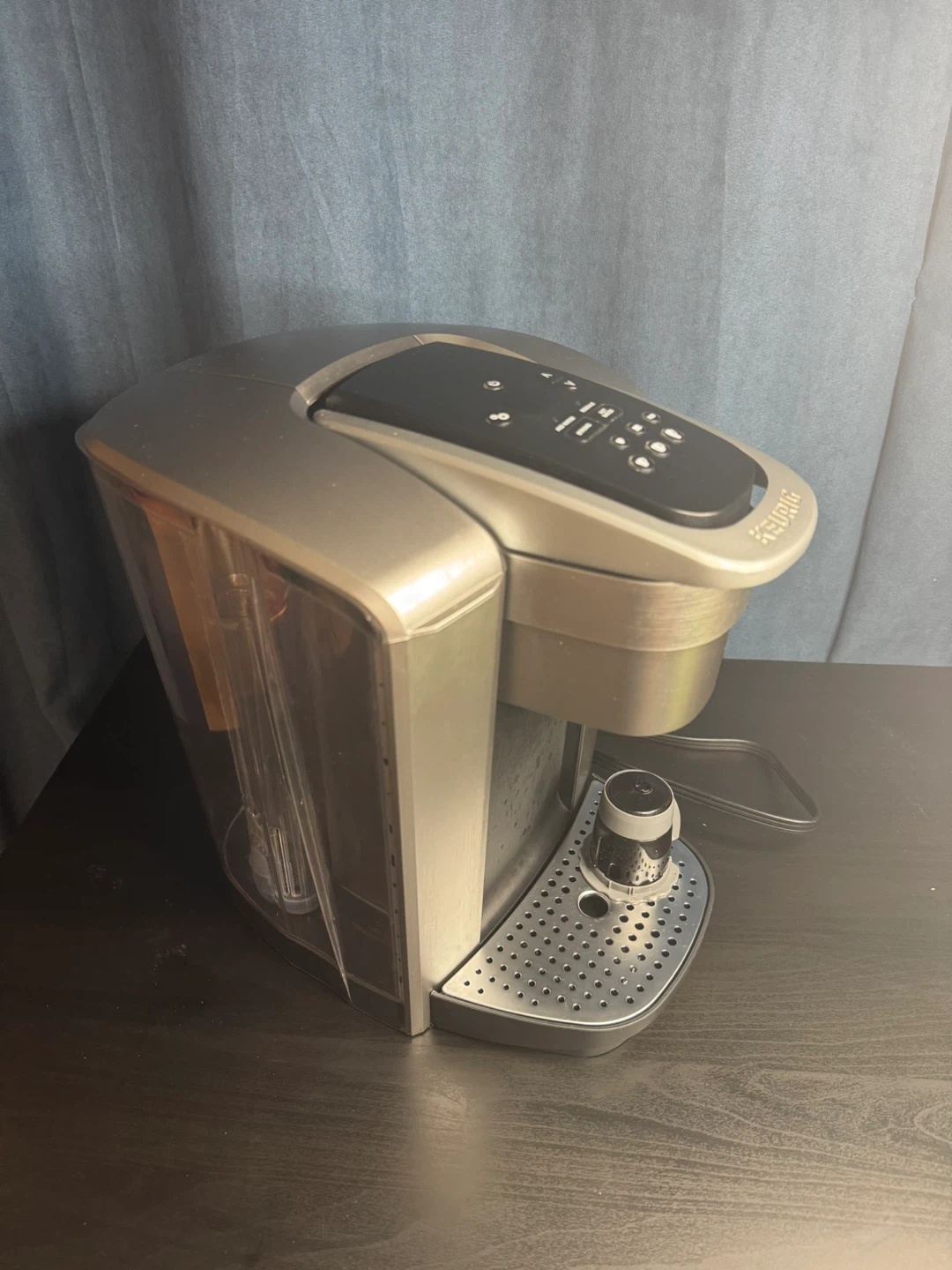 Selling a Keurig coffee maker. It's in good condition and ready to brew your favourite coffee. Comes with a k-cup and almost full box of light roast coffee pods.