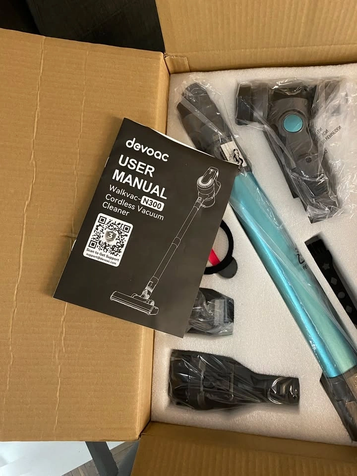 Inclusions: Vacuum motor, motorized floor head, retractable metal tube, crevice tool, 2-in-1 brush, wall mount, and charger.