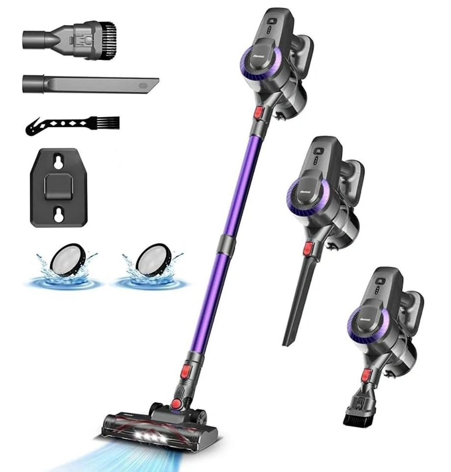 Features: 4-stage HEPA filtration, 180° rotatable brush head with LED headlights, and one-click dust emptying.