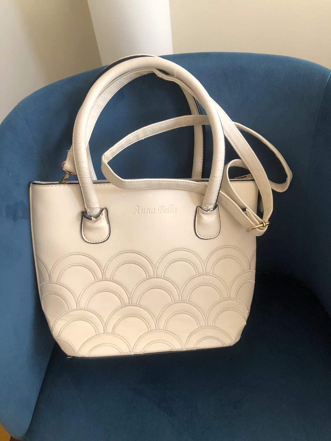 Selling a cream-coloured tote bag from Anna Bella. It's in great condition and ready for a new home! Perfect for everyday use or a night out.